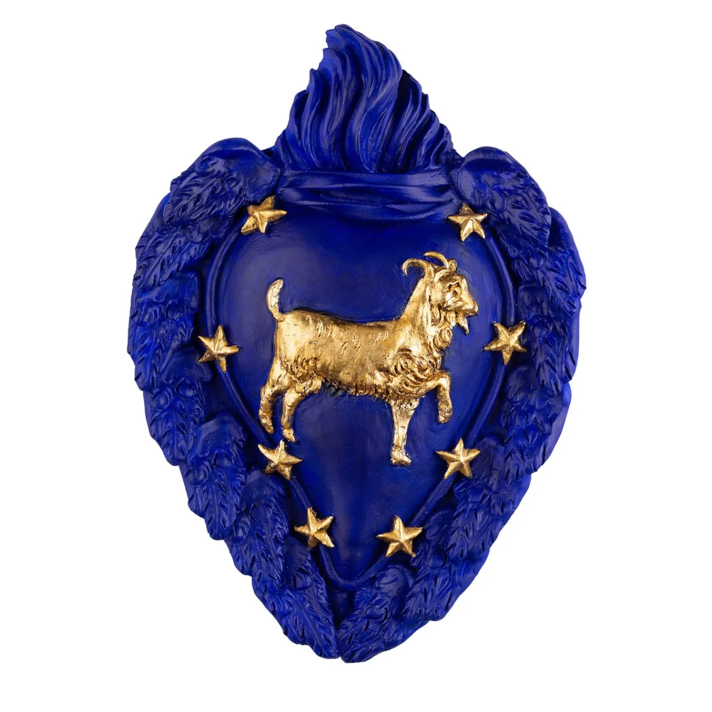 Responsabile, stabile e sincero, il Capricorno è un amico fidato. Ispirato ai segni zodiacali presenti nell’orologio veneziano di San Marco, questo ex-voto realizzato e decorato a mano presenta un’accattivante tavolozza blu Majorelle con un motivo centrale di capra in foglia d’oro incorniciato da stelle modellate in foglia d’oro. Impreziosito da una graziosa cornice di ali d’angelo piumate, è un regalo originale e superbo per un Capricorno speciale nella vostra vita.