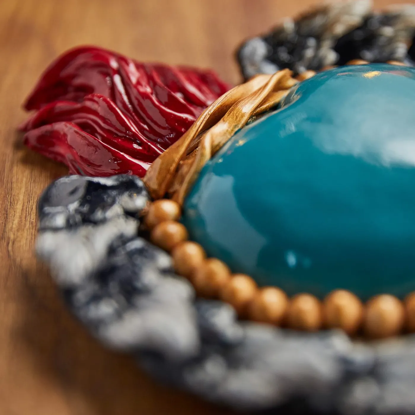 Una rivisitazione contemporanea del classico cuore devozionale ex-voto, questa ceramica graziosamente lavorata e dipinta a mano presenta uno splendido cuore centrale verde Tiffany, circondato da piccole perle dorate e da un bordo svolazzante di ali di cherubino squisitamente dettagliate. Un oggetto d’arte accattivante per uno spazio moderno o classico, questo pezzo sarà un ottimo regalo di benvenuto.