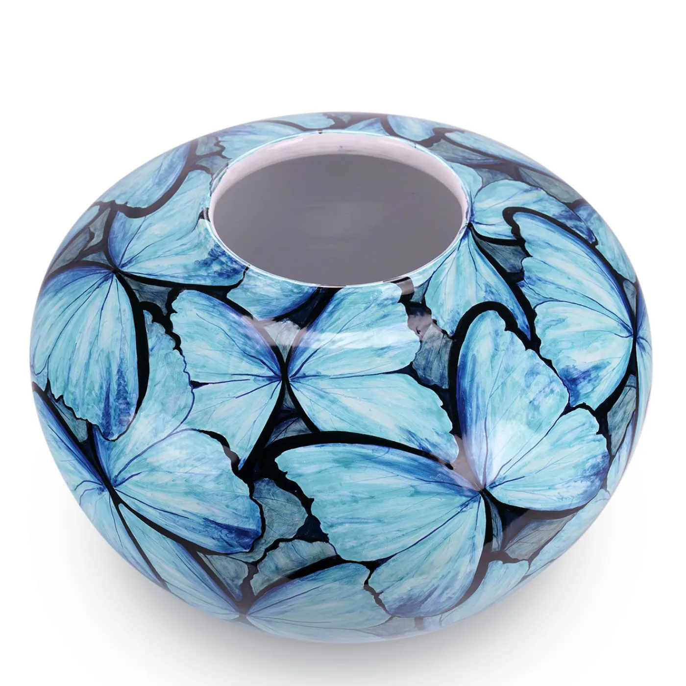Il vaso Petalouda si distingue per un design vivace ispirato alla farfalla blu, simbolo universale di gioia, trasformazione e speranza. La superficie è decorata con farfalle sovrapposte, dipinte a mano in tonalità di blu intenso, che conferiscono al pezzo un senso dinamico di movimento e profondità. Realizzato al tornio da maestri ceramisti, ogni esemplare presenta leggere variazioni che ne evidenziano l’unicità e la lavorazione artigianale. Prodotto in edizione limitata di 30 pezzi, questo vaso decorativo fonde immaginazione ed eleganza in un oggetto di forte impatto visivo.