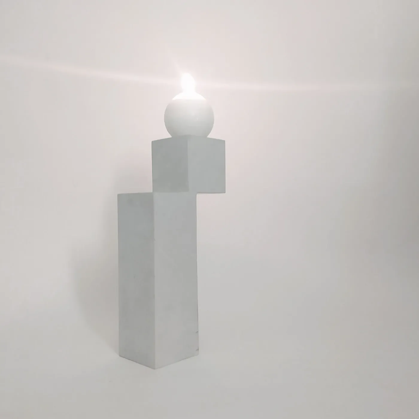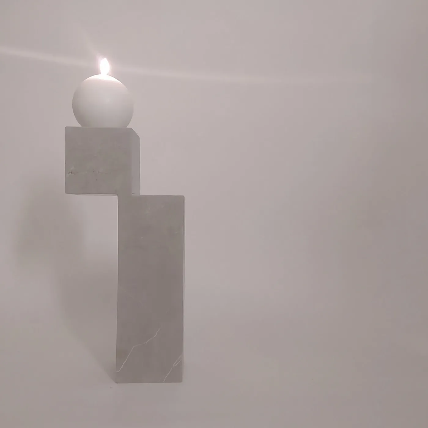 Un gioco di volumi geometrici puri incorporati in un corpo scultoreo intrigante che mostra un equilibrio ingannevolmente instabile, questo portacandele realizzato in pietra naturale chiara incarna l’incontro tra fascino ancestrale e arte contemporanea. La candela può essere appoggiata sul cubo e sul parallelepipedo, a seconda delle esigenze. Candela inclusa. Sono disponibili più varianti di marmo, consultare il catalogo Artemest.