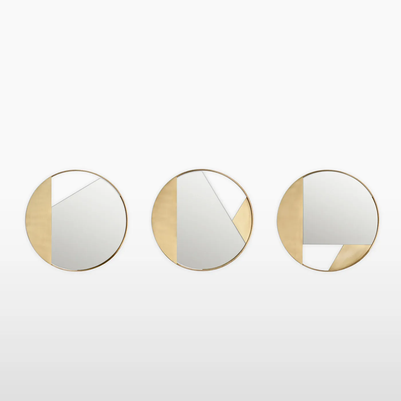 Revolution mirror N. 3 è uno specchio da parete, caratterizzato da applicazioni geometriche in ottone dorato e da una caratteristica sezione cava, meticolosamente realizzata a mano in Italia. Parte dell’esclusiva collezione Revolution, sviluppata dal team di ricerca artistica di Edizione Limitata a Milano, mostra una perfetta armonia tra le geometrie di cornici, specchi e pareti.
