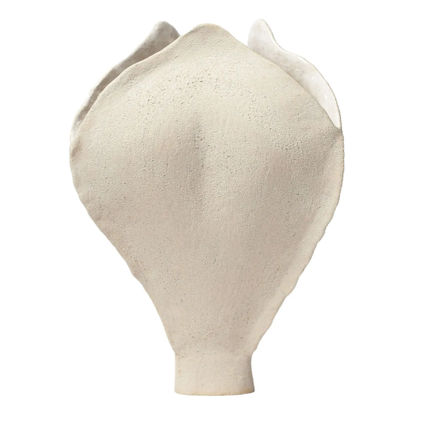 Ossa Iris fa parte di una collezione ispirata alle scatole di semi, le capsule protettive delle piante. Queste forme organiche simboleggiano le parti dure del nostro corpo, come le ossa, e proteggono l’essenza della vita. Il vaso Iris cattura la bellezza botanica della scatola di semi del fiore Iris, rimanendo fedele alla sua ispirazione naturale. Realizzato in gres bianco refrattario, smaltato e cotto ad alta temperatura. Un pezzo unico che celebra la bellezza della natura nelle sue molteplici forme.