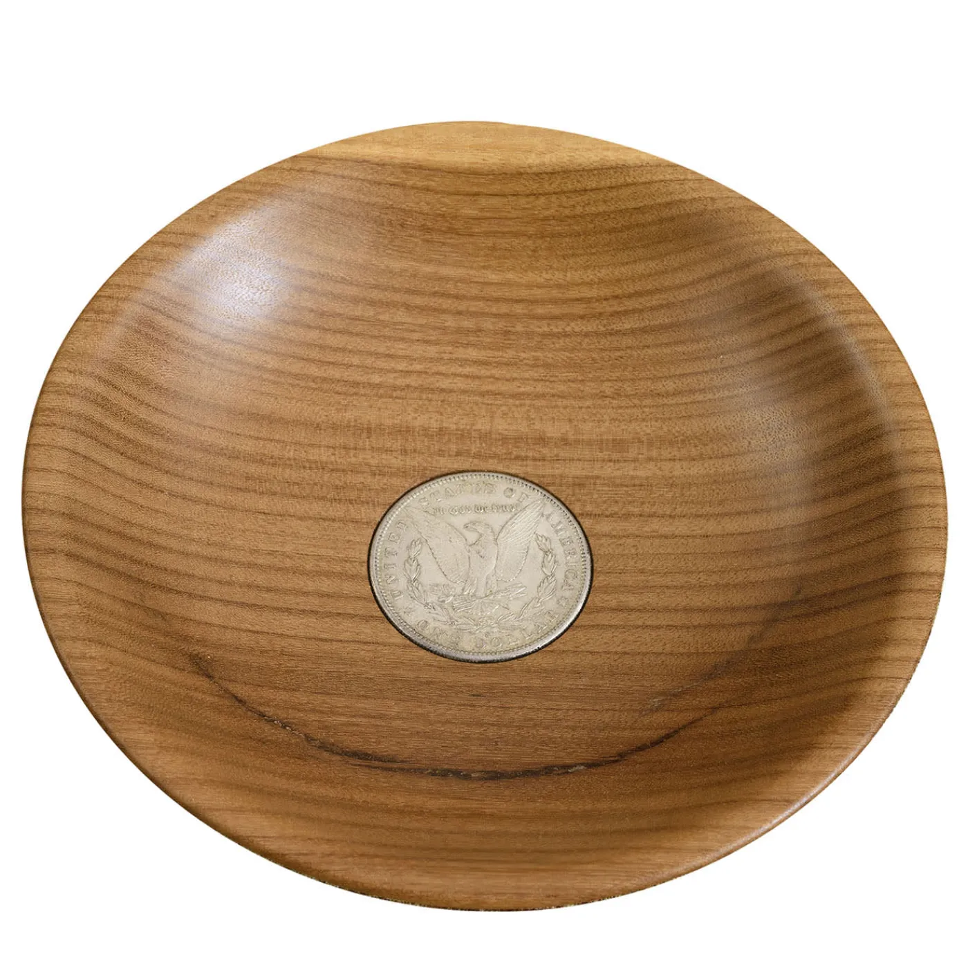 Il vassoio portamonete è realizzato in legno di afromosia con al centro una moneta americana antica. Questo oggetto decorativo funge da funzionale svuota tasche e aggiunge un tocco di fascino vintage. Parte di una serie limitata di otto pezzi unici, mette in risalto le venature naturali del legno e il distinto accento metallico per un’estetica raffinata. Ideale come centrotavola o come elegante portaoggetti per gli oggetti di uso quotidiano.