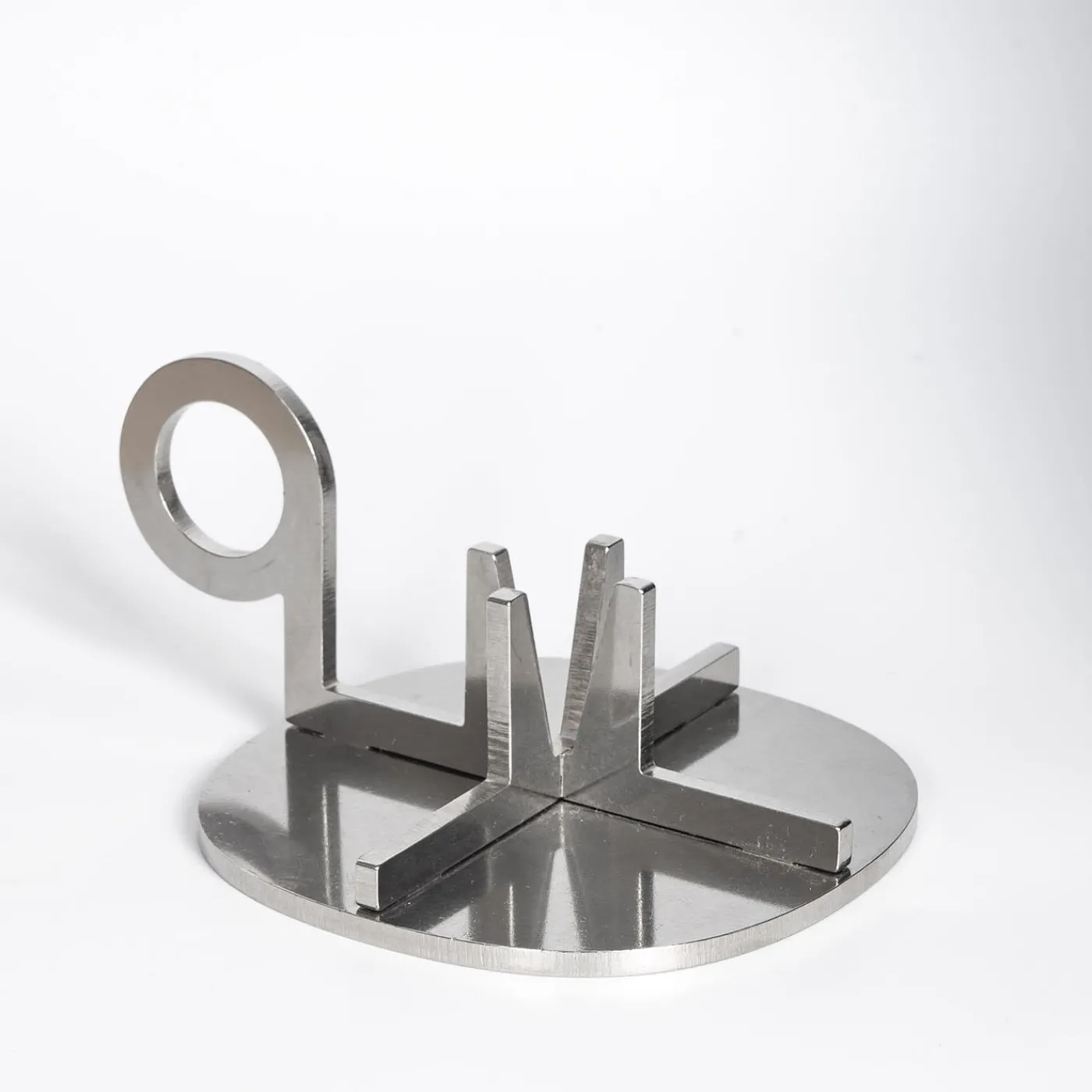 Il portacandele in acciaio inossidabile Crocera Bugia è realizzato con spesse lastre di acciaio inossidabile tagliate in forma scultorea. Ispirato ai dettagli meccanici del motore “Vespa-Piaggio”, prende il nome da questo design. La superficie è sia lucida che strutturata, burattata e lucidata per ricordare la finitura di una Vespa. La versione “Bugia” è progettata per essere maneggiata con facilità.