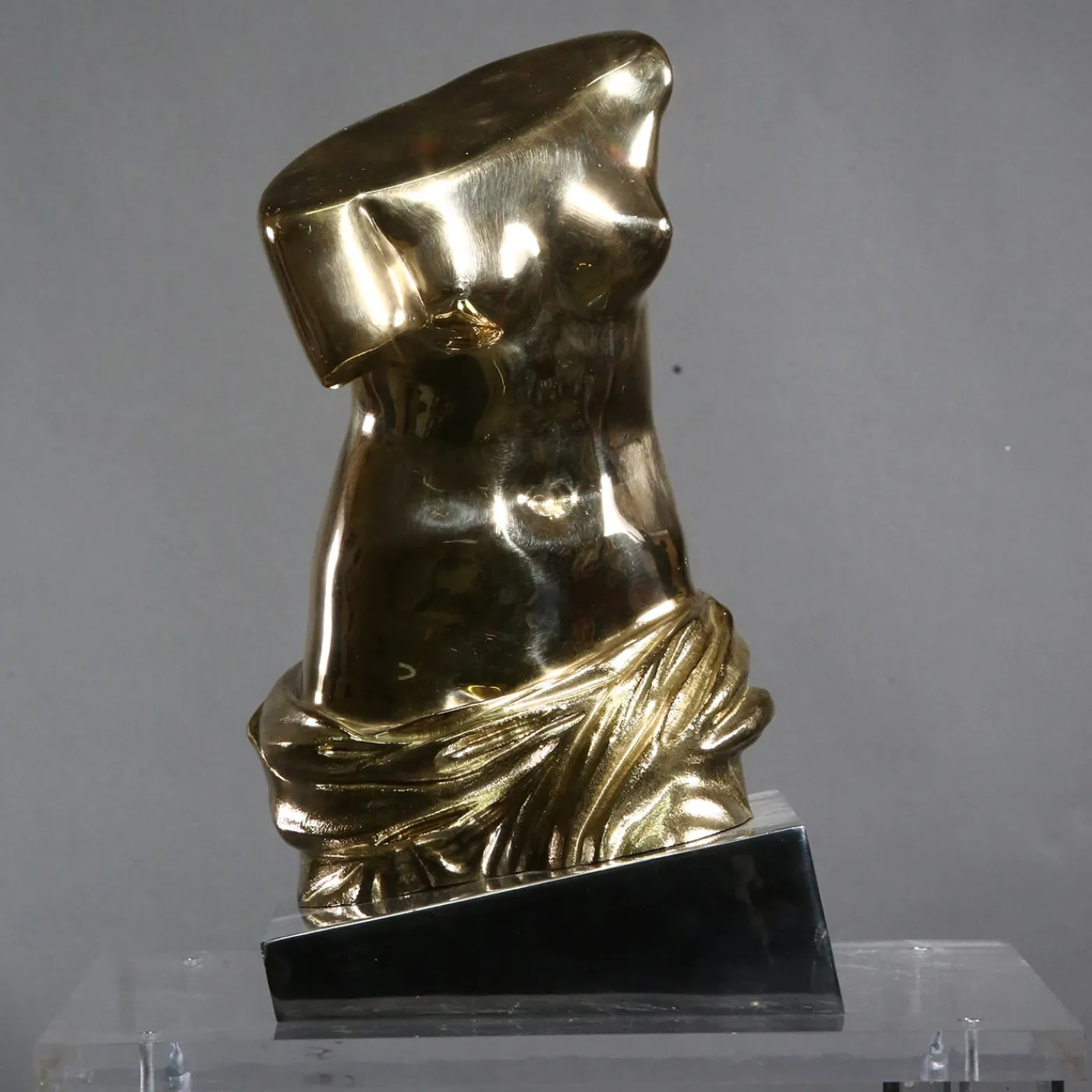 Questa squisita scultura raffigura il dorso della Venere di Milo, fusa in bronzo giallo con il metodo della cera persa e con una finitura spazzolata. Poggia su una base in alluminio, anch’essa spazzolata, che aggiunge eleganza moderna alla sua bellezza classica. Un omaggio accattivante a un’arte senza tempo.