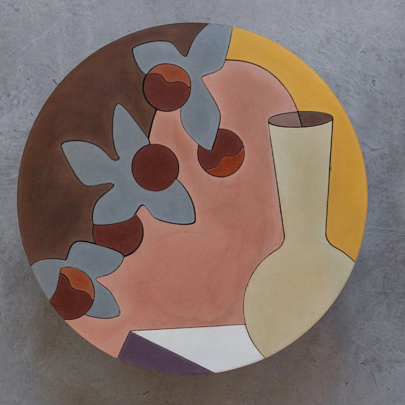 Cezanne Round Concrete Painting è uno dei tre quadri materici progettati da Serena Confalonieri. I tre dipinti sono caratterizzati da un forte dialogo con la tradizione artistica europea delle nature morte, di cui Cézanne, che ha ispirato i nomi delle creazioni, è un magistrale interprete.