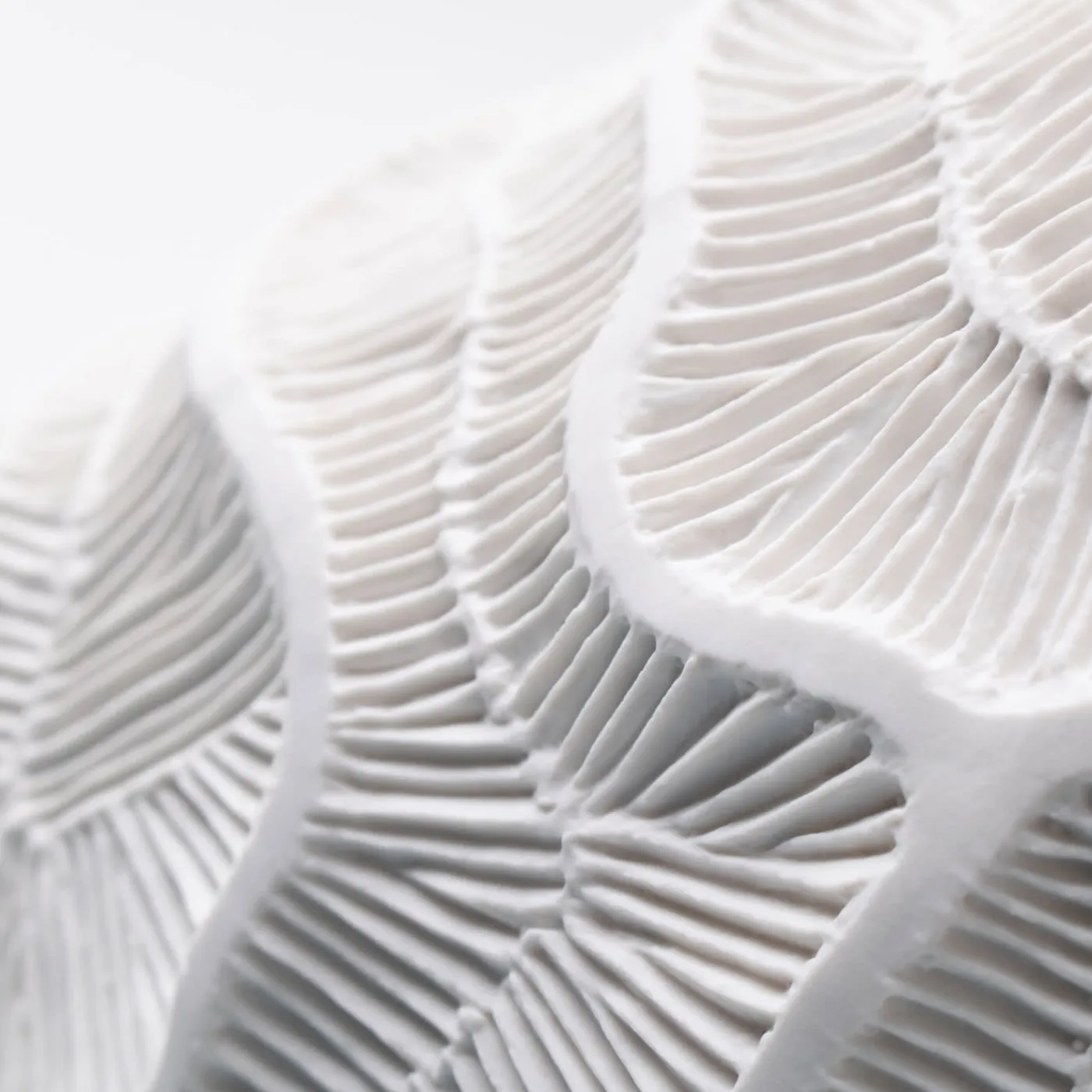 Una trama densa e intricata, che rimanda ai fossili di madrepore, fa da scheletro a questo vaso della collezione Fossilia. Caratterizzato da una splendida composizione, dalla perfezione della forma e dall’accuratezza dei dettagli della porcellana non smaltata, questo maestoso vaso è una vera e propria opera d’arte.