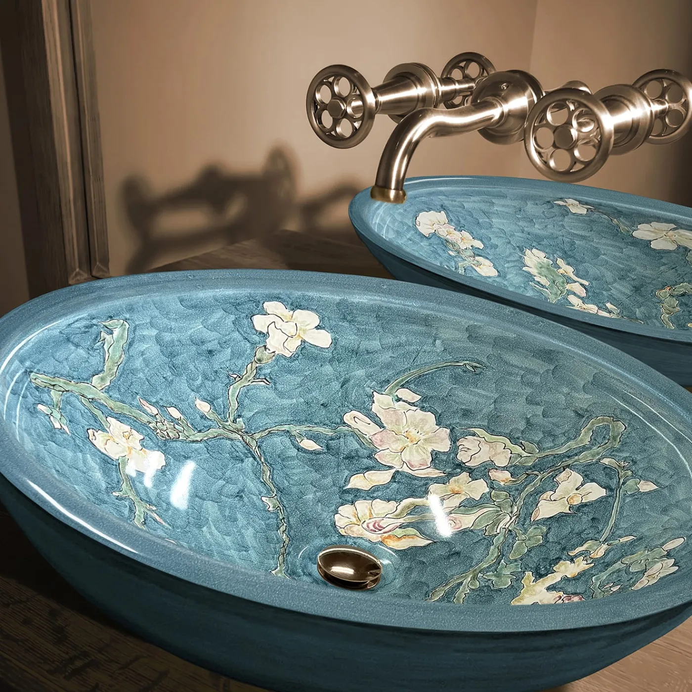 Un’ode all’artigianato della ceramica, questo lavello rotondo in ceramica appartiene alla raffinata serie di design della romantica collezione Van Gogh© Francesco De Maio x Van Gogh Museum. Le tonalità vibranti e le sfumature minute ricreano i ramoscelli fioriti che Vincent van Gogh dipinse con cura nel suo capolavoro “Mandorlo in fiore”. Ogni pezzo è unico e offre uno straordinario fascino tattile e visivo.
