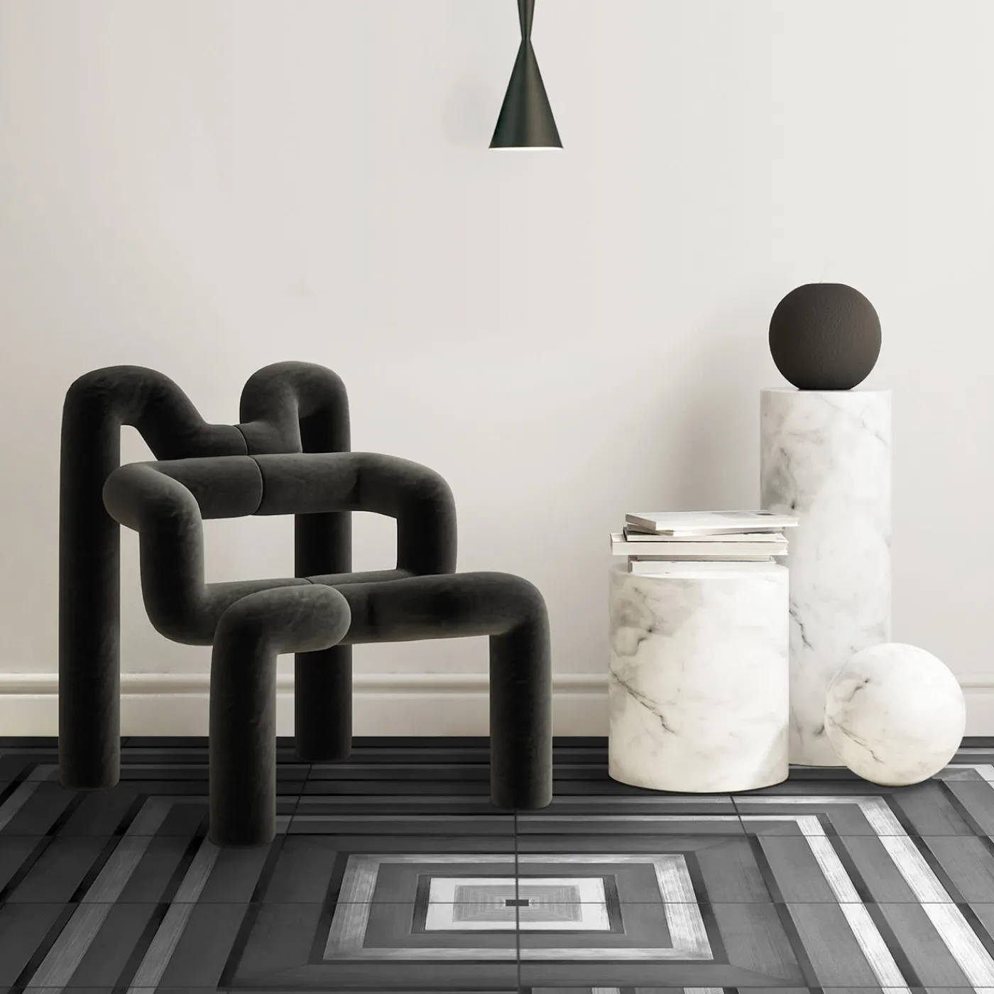 Geometrie d’Ombra è una collezione di piastrelle di Grès Maiolicato decorate a mano e ispirate a forme geometriche essenziali: cerchi, linee, quadrati, diagonali e triangoli. Rappresenta un raffinato connubio tra tradizione artigianale e innovazione tecnologica. Ogni piastrella è realizzata con una meticolosa tecnica di decorazione a mano che crea un suggestivo gioco di luci e ombre, conferendo profondità e volume ai disegni geometrici. La versione qui presentata presenta un motivo quadrato ed è disponibile in Coal Black, una tonalità profonda e decisa che intensifica l’effetto tridimensionale del disegno. Versatili ed espressive, le piastrelle possono essere mescolate e abbinate per formare composizioni uniche, offrendo infinite possibilità di personalizzazione degli interni. Il prezzo è indicato al metro quadro. Per maggiori dettagli, contattare il Concierge.