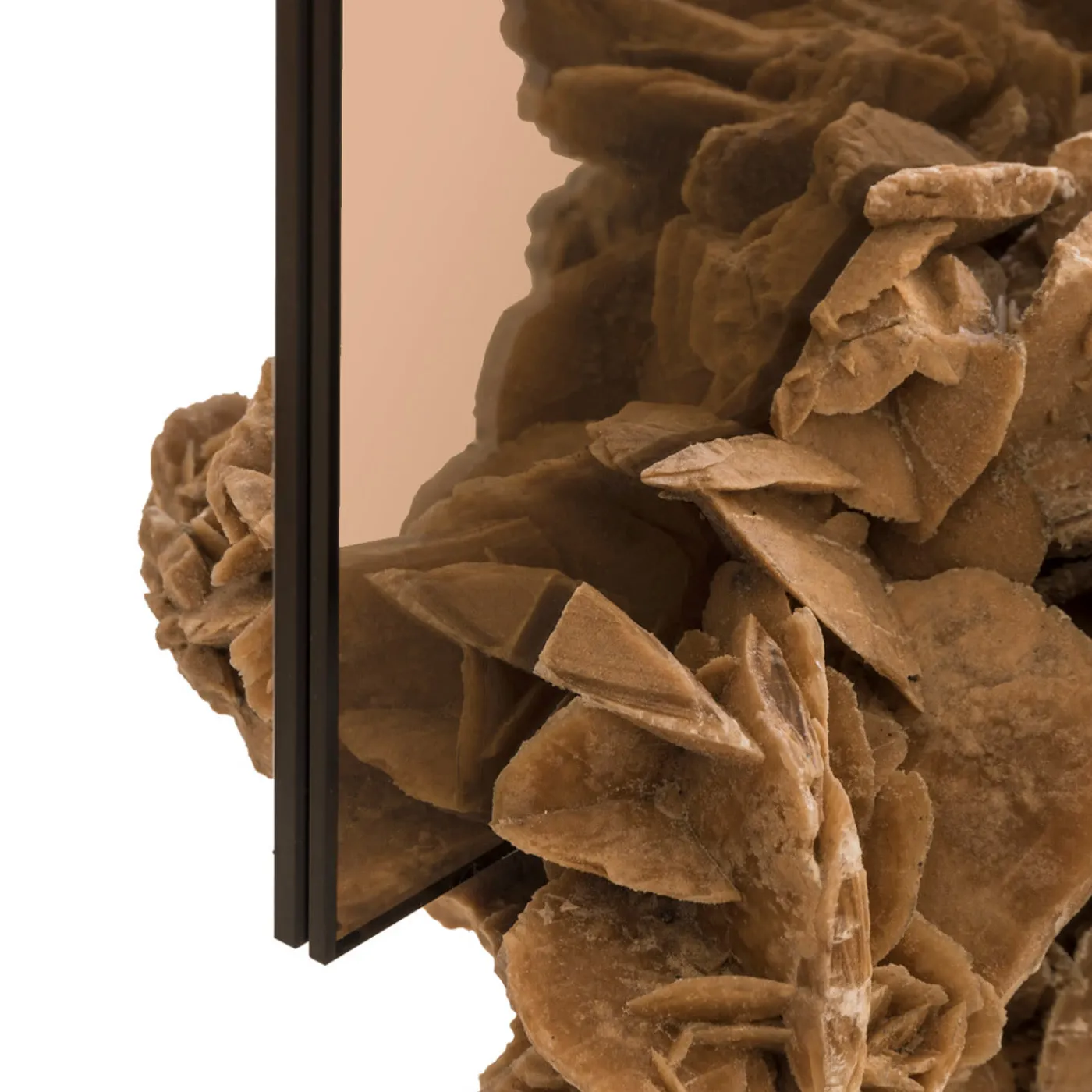 Si dice che un antico Dio si sia innamorato di una donna di una tribù del deserto. Come simbolo del suo amore, cristallizzò delle rose, lasciandole sparse nel deserto perché il suo vero amore le trovasse. Rosa-rosæ, uno specchio indipendente che sorge dalla rosa del deserto per fornire un “miraggio” o “specchio”, ci permette di guardare più da vicino noi stessi, un riflesso di una storia antica ora al centro del design moderno.