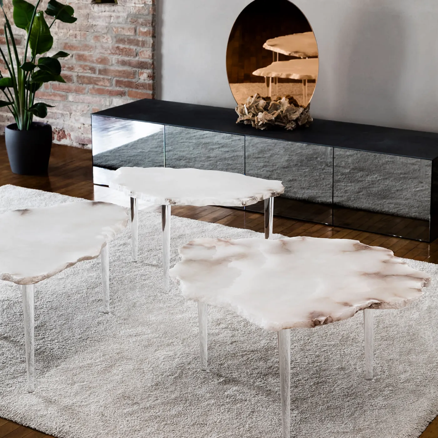 Si dice che un antico Dio si sia innamorato di una donna di una tribù del deserto. Come simbolo del suo amore, cristallizzò delle rose, lasciandole sparse nel deserto perché il suo vero amore le trovasse. Rosa-rosæ, uno specchio indipendente che sorge dalla rosa del deserto per fornire un “miraggio” o “specchio”, ci permette di guardare più da vicino noi stessi, un riflesso di una storia antica ora al centro del design moderno.