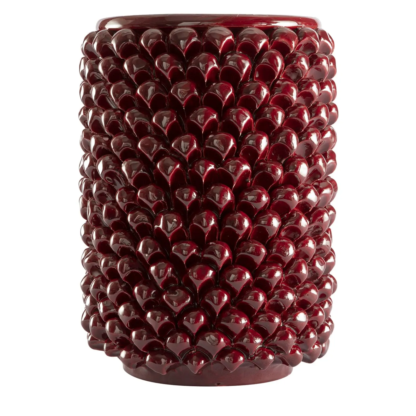 Questo vaso cilindrico bordeaux è un viaggio sensoriale. La morbida argilla bianca, modellata con cura, l’acqua che dà vita alla materia e i pigmenti vibranti rendono ogni creazione unica. Lavorate a mano, queste forme di ceramica conservano e irradiano un’eredità culturale secolare, un simbolo duraturo della tradizione ceramica. Progettato per contenere fiori freschi, questo vaso conferisce un’eleganza senza tempo a qualsiasi spazio.