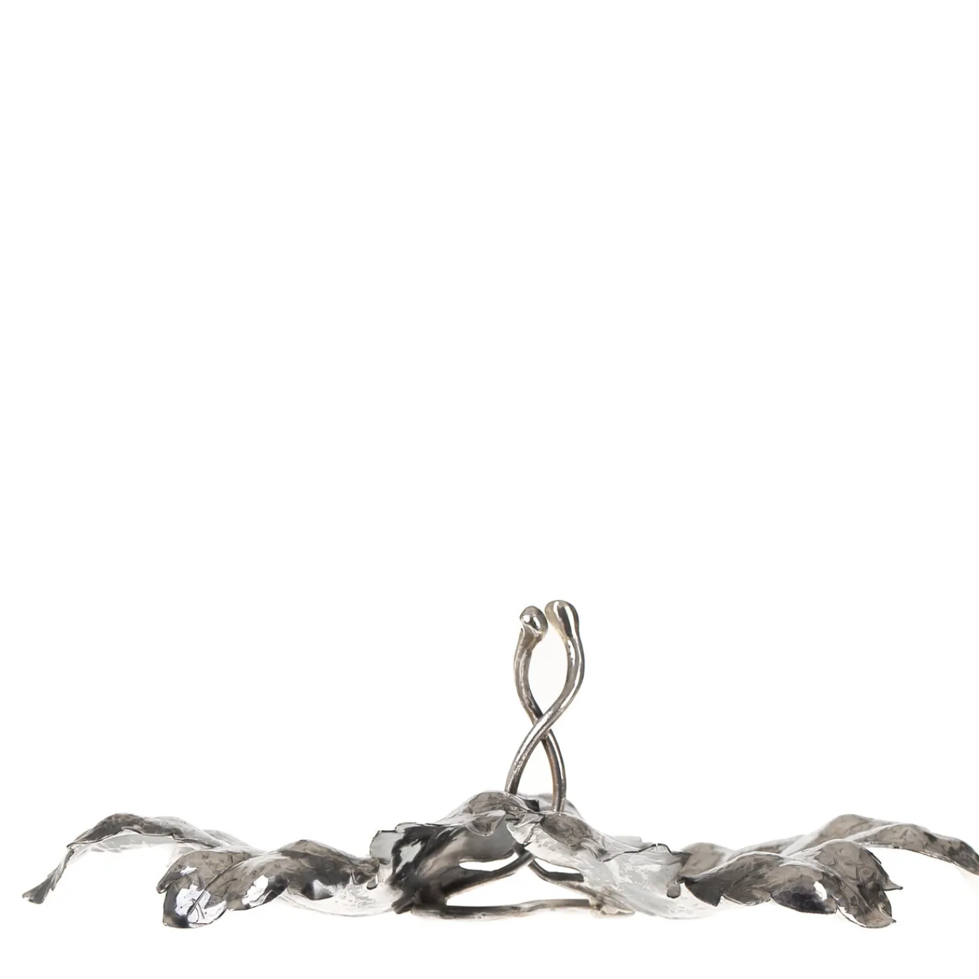 Gli steli intrecciati di una coppia di foglie si innalzano in un gesto di unità della natura. Ricavato da una lastra d’argento sterling dai Fratelli Lisi, questo ornamento è interamente sbalzato e inciso a mano.