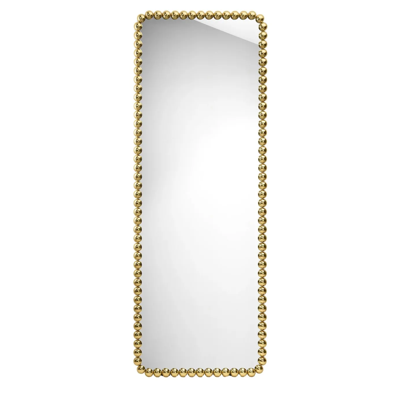 Sontuoso e contemporaneo specchio free-standing disegnato da Nika Zupanc per la serie Gioiello, questo pezzo sarà un’aggiunta maestosa e audace a un interno in stile contemporaneo. Singolare e iconico, è caratterizzato da una cornice rettangolare di sfere in ottone lucidato in oro. È disponibile anche nelle finiture nera e cromata e in altre forme; per le opzioni, consultare il catalogo Artemest.