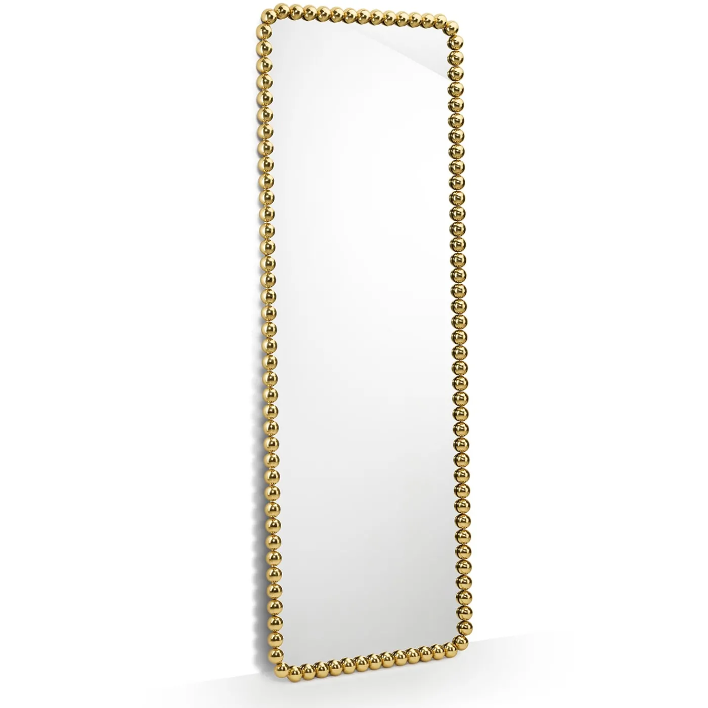 Un gioiello da esporre su una parete spoglia, questo specchio freestanding sfoggia un’incantevole cornice in ottone composta da perline rifinite in oro che ricordano preziose collane. Un’aggiunta meravigliosa agli arredi moderni in cui si vuole infondere glamour, la sua natura freestanding ne rafforza l’impatto visivo. Scoprite altre intriganti varianti nel catalogo Artemest.