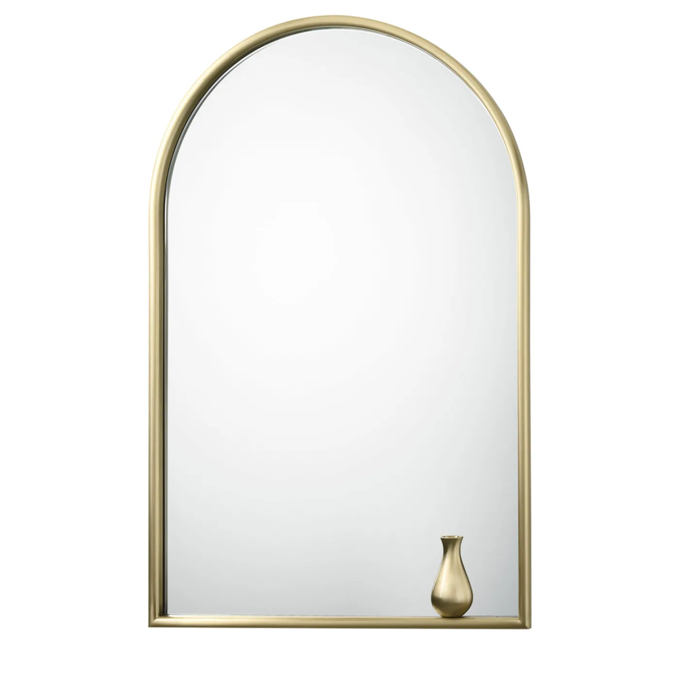 Questo elegante specchio è caratterizzato da una forma semiellittica che crea una curva nella parte superiore, mentre termina con una parte inferiore diritta, sulla quale si trova una statuetta decorativa raffigurante un vaso. La cornice e la decorazione sono entrambe realizzate in ottone, che completa il pezzo con la sua calda luminosità. Da solo o abbinato ad altri oggetti in ottone dello stesso marchio, questo pezzo arricchirà l’arredamento di un ingresso, di un soggiorno o di una camera da letto.