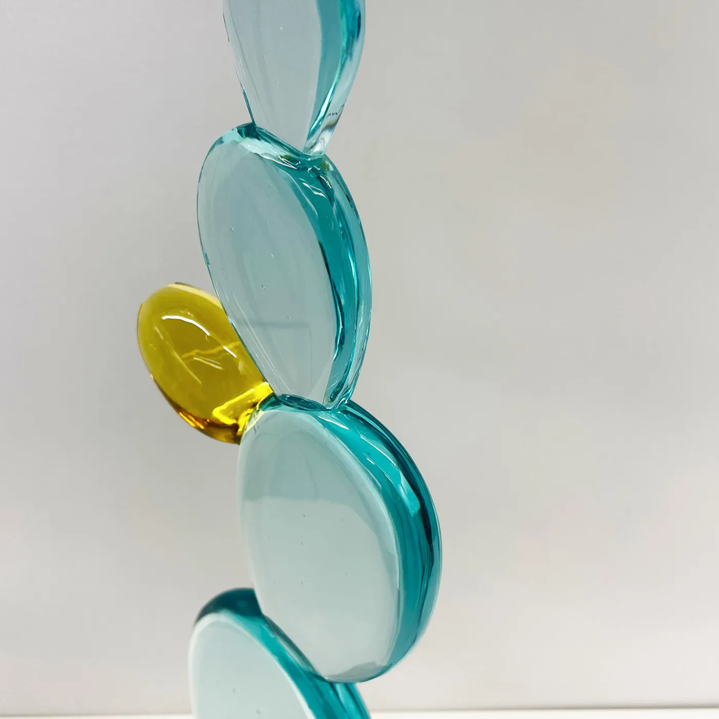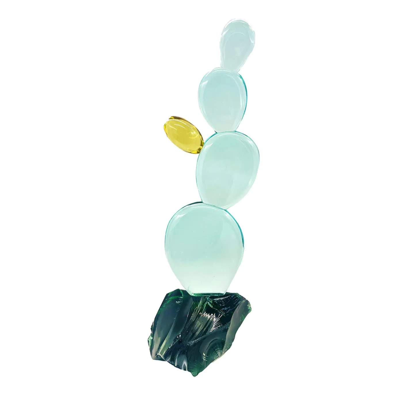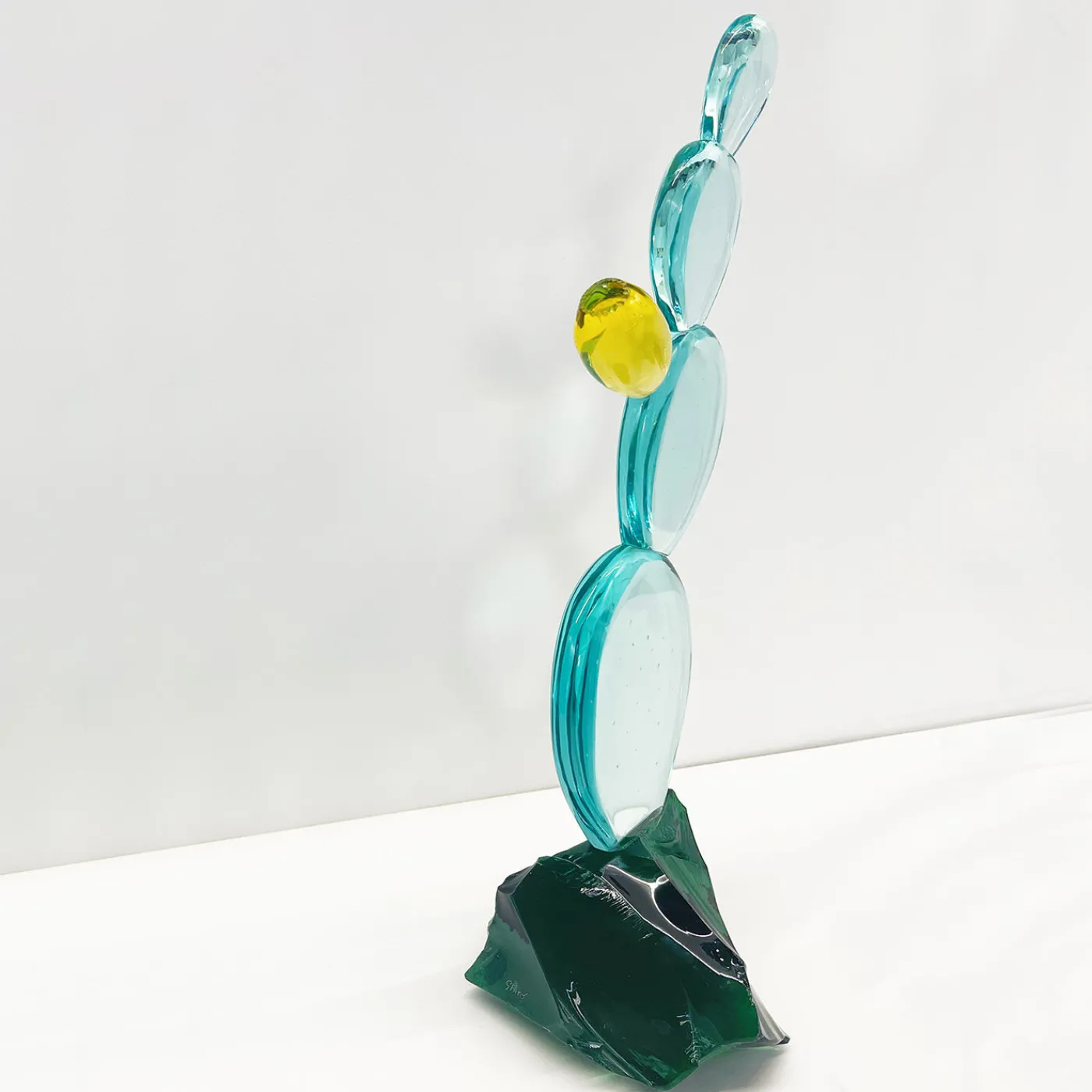 Questa scultura è stata realizzata a mano lavorando il cristallo con estrema cura e attenzione. Il cristallo del cactus è di colore acquamarina ad alta trasparenza, mentre il fiore è realizzato con cristallo giallo ambrato. Le foglie sono state levigate e presentano puntini tipici di questa pianta. La base della scultura è costituita da un blocco grezzo di cristallo naturale verde intenso che conferisce un effetto più naturalistico a questo cactus. Questo articolo è interamente realizzato a mano, per cui possono verificarsi lievi variazioni.