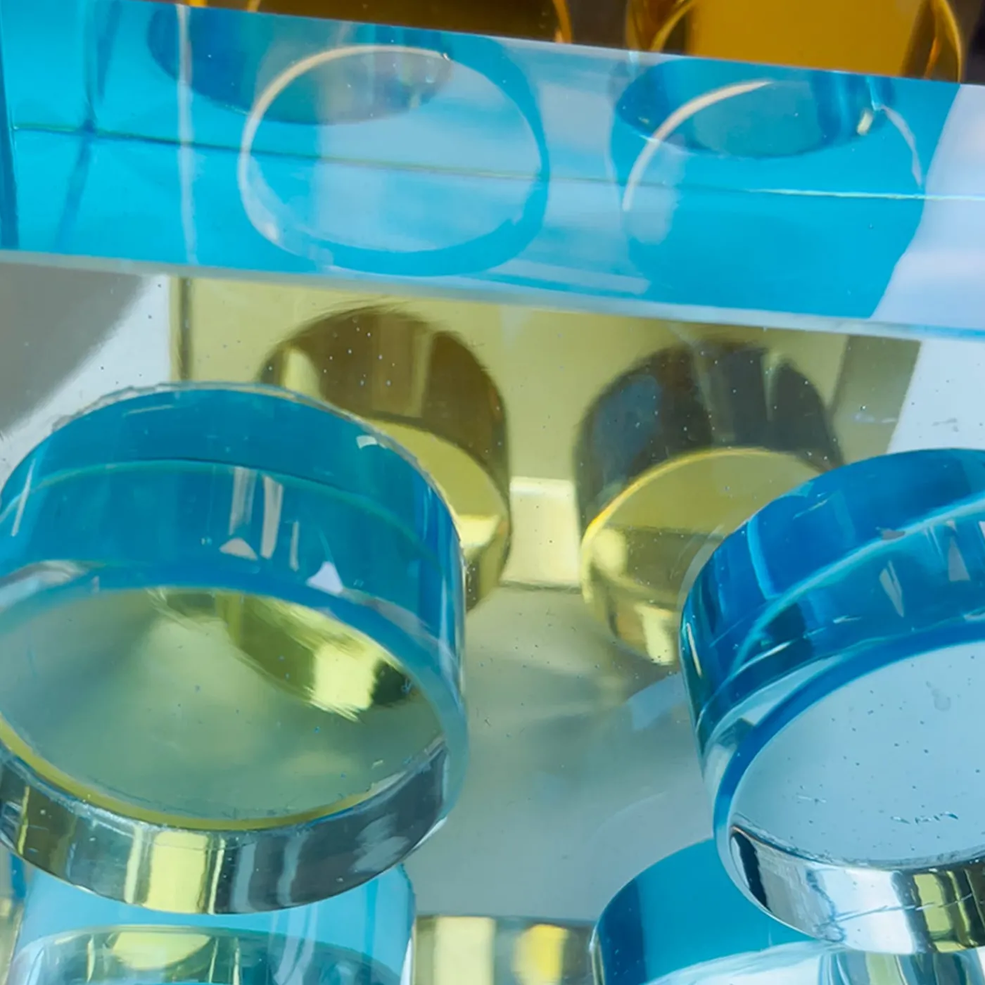 Scultura artistica e unica nel suo genere. L’artigianalità e la natura del materiale rendono possibile la creazione di due sculture simili ma mai identiche. La scultura vuole rappresentare un mattone da costruzione accattivante e originale. Il cristallo è stato lavorato fino a ottenere una superficie liscia e brillante. Il colore blu ad alta trasparenza conferisce eleganza e raffinatezza. È ideale come accessorio da scrivania o per dare un tocco di stile e personalità all’ambiente.
