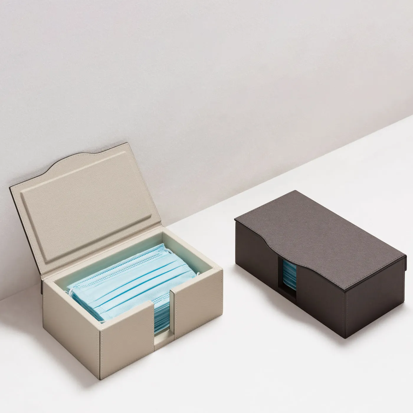 Struttura in legno rivestita in pelle. Dotato di coperchio a cerniera.