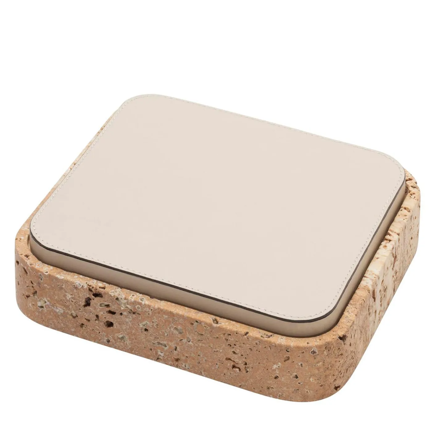 Caratterizzate da forme geometriche minimali, queste scatole combinano la bellezza del travertino in diverse sfumature di scelta con la migliore pelle italiana. Le dimensioni personalizzate sono disponibili su richiesta.