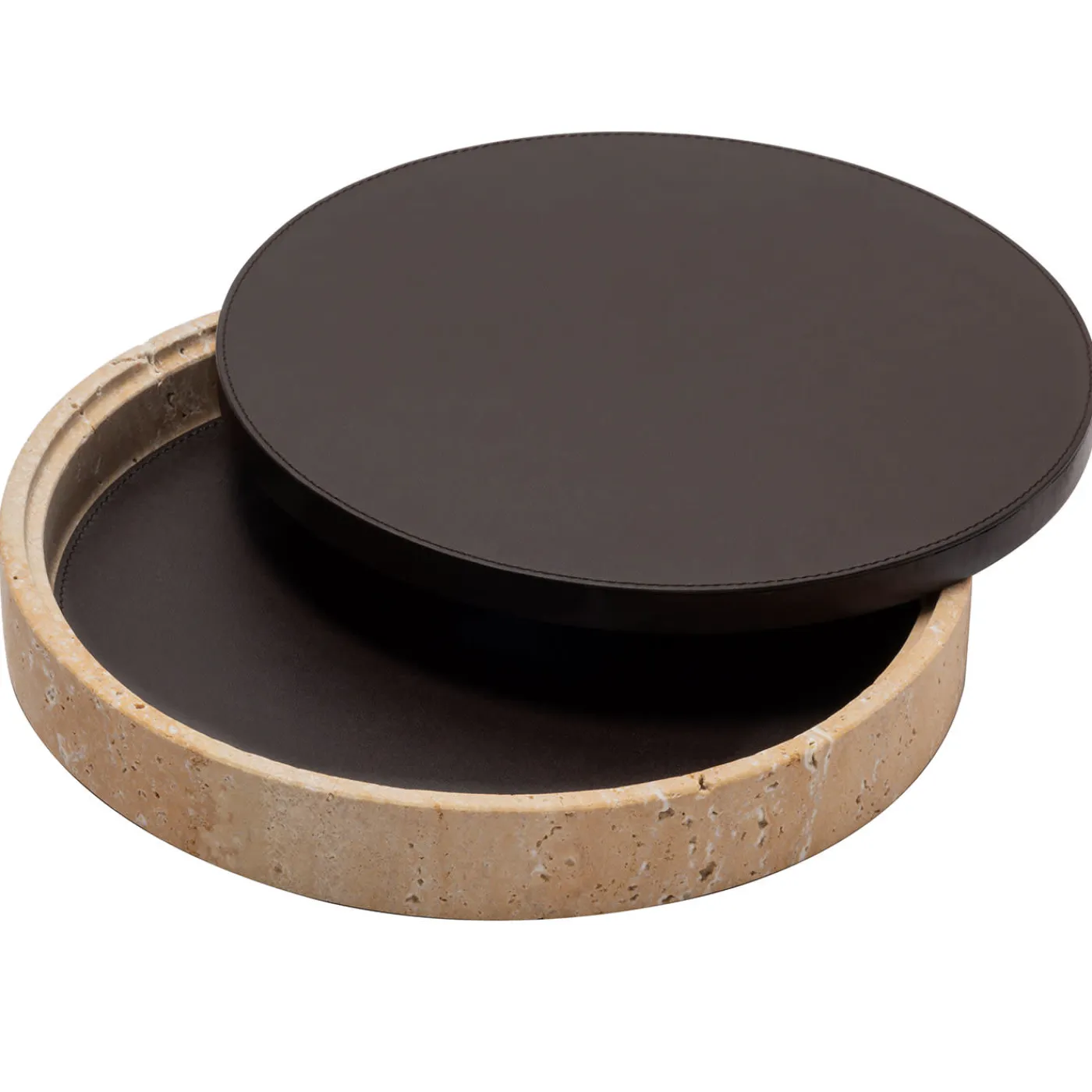 Caratterizzate da forme geometriche minimali, queste scatole combinano la bellezza del travertino in diverse sfumature di scelta con la migliore pelle italiana. Le dimensioni personalizzate sono disponibili su richiesta.