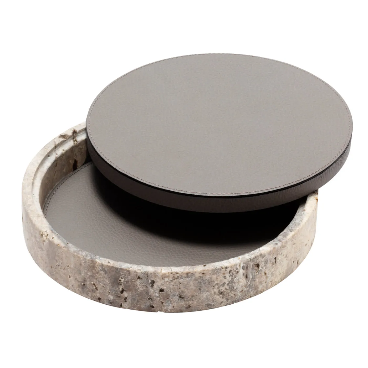 Caratterizzate da forme geometriche minimali, queste scatole combinano la bellezza del travertino in diverse sfumature di scelta con la migliore pelle italiana. Le dimensioni personalizzate sono disponibili su richiesta.