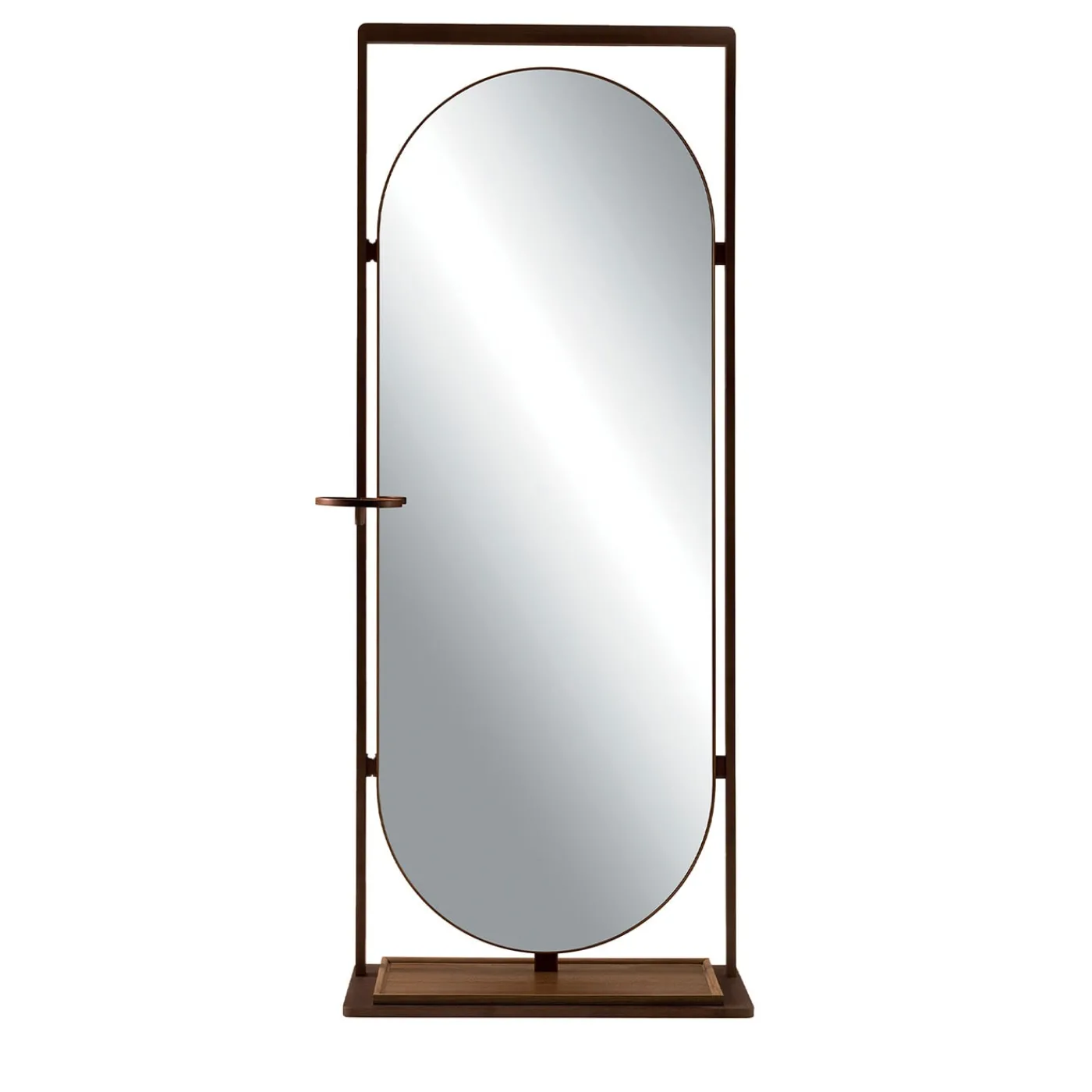 Un design iconico ed elegante per completare l’arredamento di una camera da letto contemporanea, questo splendido specchio da terra è realizzato a mano con materiali di prima qualità. Montato su una base in metallo laccato bronzo, presenta una forma ellittica e verticale, racchiusa in una cornice in legno impiallacciato in noce canaletto massiccio. Per ulteriori dettagli, rivolgersi al Concierge.