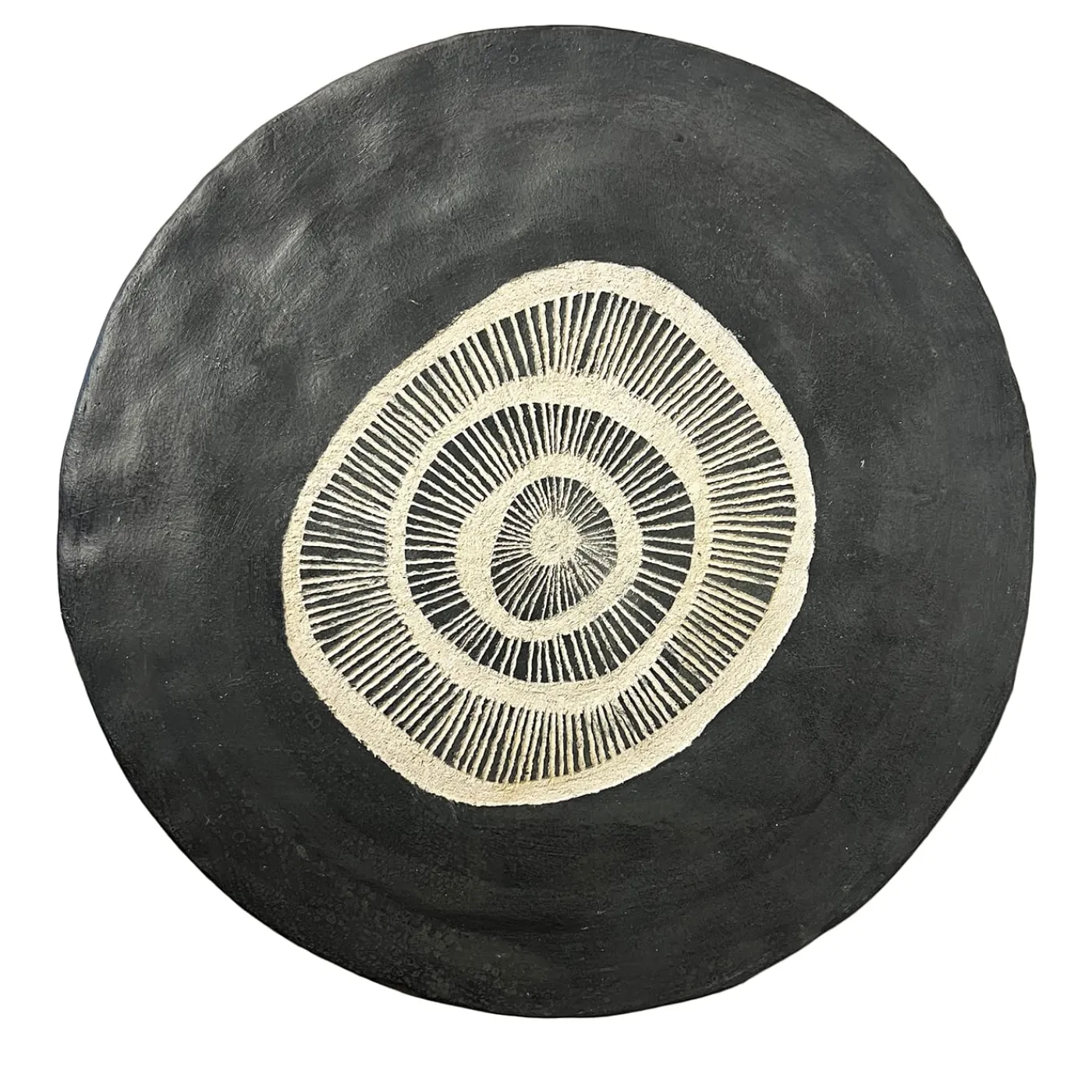Caratterizzato da ipnotici cerchi concentrici, questo piatto in ceramica emana un senso di ritmo e armonia. Ogni anello finemente inciso contrasta con lo sfondo nero profondo, creando un gioco dinamico di luci e ombre. Gli intricati dettagli intagliati a mano ne esaltano il carattere artigianale, rendendo ogni pezzo unico. Esposto come accento a parete o come centrotavola decorativo, questo piatto conferisce un’estetica raffinata e contemporanea a qualsiasi spazio.