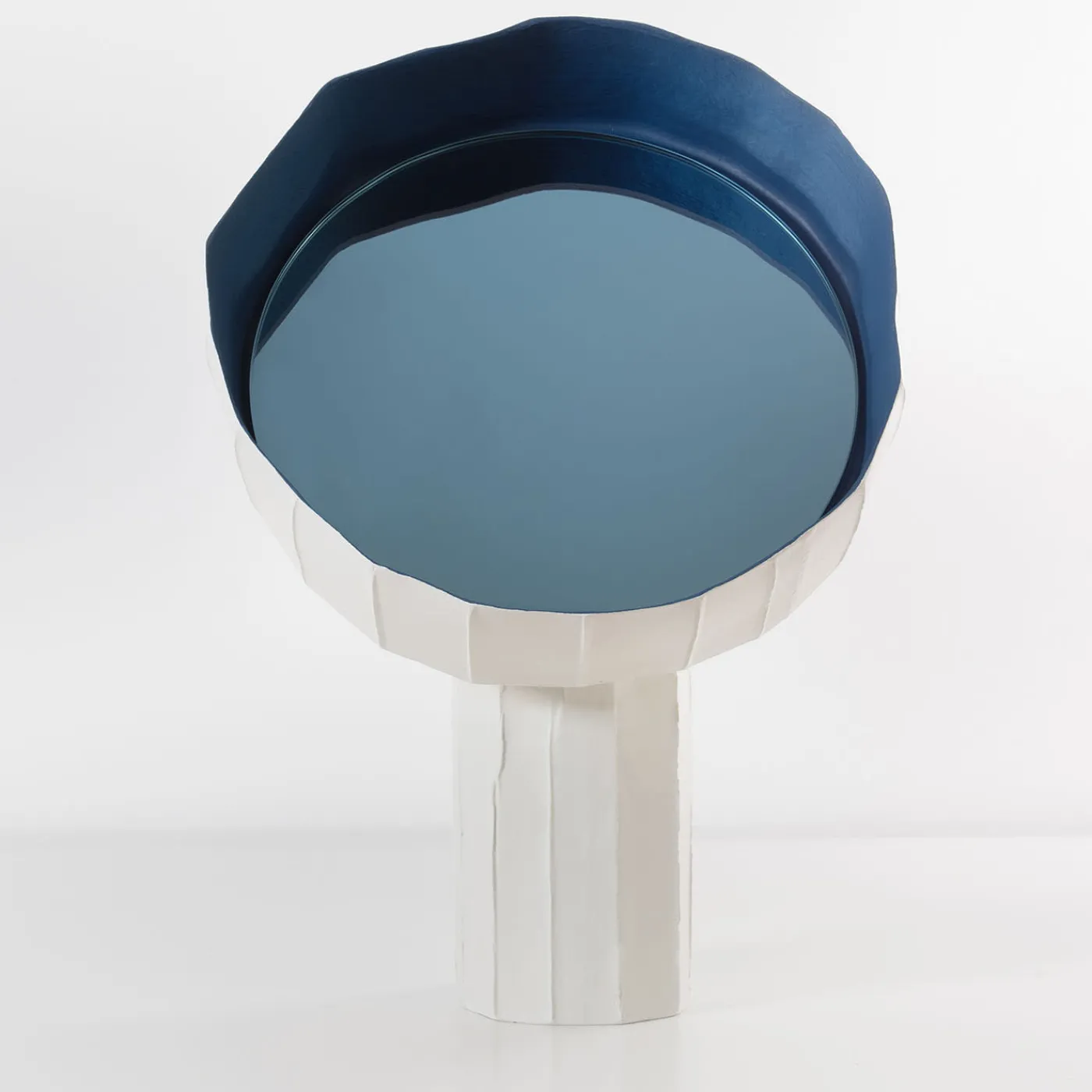 Parte della collezione Reflections dei designer Paola Paronetto e Giovanni Botticelli, questo specchio da tavolo luminoso e scultoreo, realizzato in carta argilla bianca, è stato ispirato in modo giocoso ai girasoli. La texture sfaccettata leggermente irregolare conferisce una piacevole sensazione tattile, mentre l’elemento superiore è abilmente sollevato per evocare la corolla di un girasole che non può fare a meno di seguire il sole.