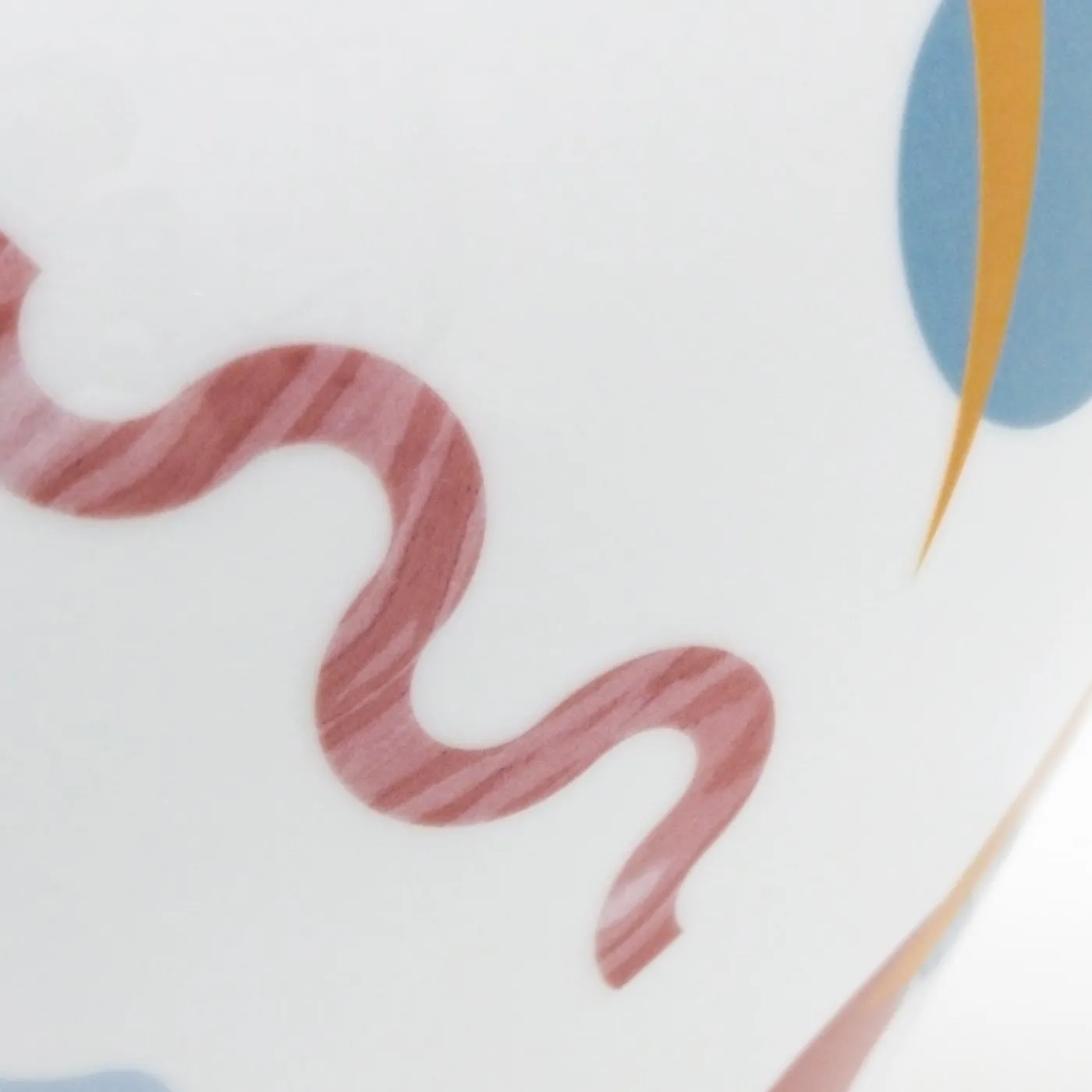 Vito Nesta e Alessandro Guerriero hanno unito le loro forze per creare la collezione Alchimie per il brand Grand Tour. Diversi prodotti, dalle porcellane ai tessuti, vengono così resi immortali nel tempo dal tocco di uno dei maestri del design italiano, fondatore dello studio Alchimia del 1976. Colori vibranti, contrasti forti, forme geometriche e astratte, di goni tipo, si incastonano e dialogano fra di loro, creando dei piccoli universi di pura bellezza visiva. Il tocco finale apportato all’interno di queste grafiche è l’uso di diverse texture che si uniscono al disegno a tinte piatte, rendendolo ancora più accattivante e divertente. Questo vaso anfora in porcellana bianca è caratterizzato dalla presenza di diverse forme ch rendono la sua superficie dinamica e moderna.
