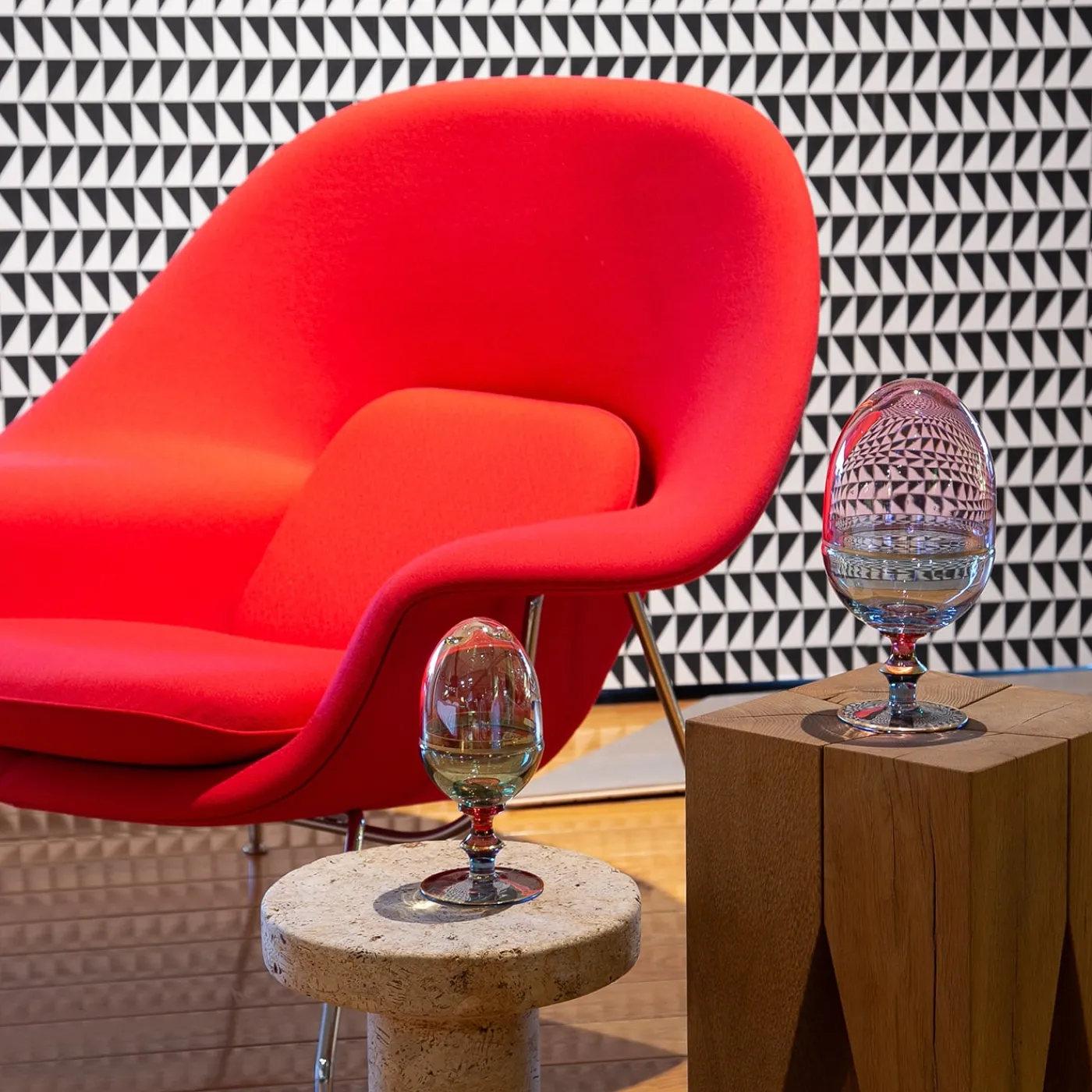 Questo squisito oggetto in vetro è una scatola funzionale progettata a forma di uovo e aggiungerà un tocco di fascino a qualsiasi arredamento per conservare ed esporre piccoli oggetti in qualsiasi punto della casa. Il piano ambrato poggia sul fondo del contenitore, dipinto in una delicata tonalità di verde, mentre un piedistallo blu e rosso sostiene l’intero pezzo. I colori sono stati applicati a mano, così come le preziose decorazioni in oro zecchino.