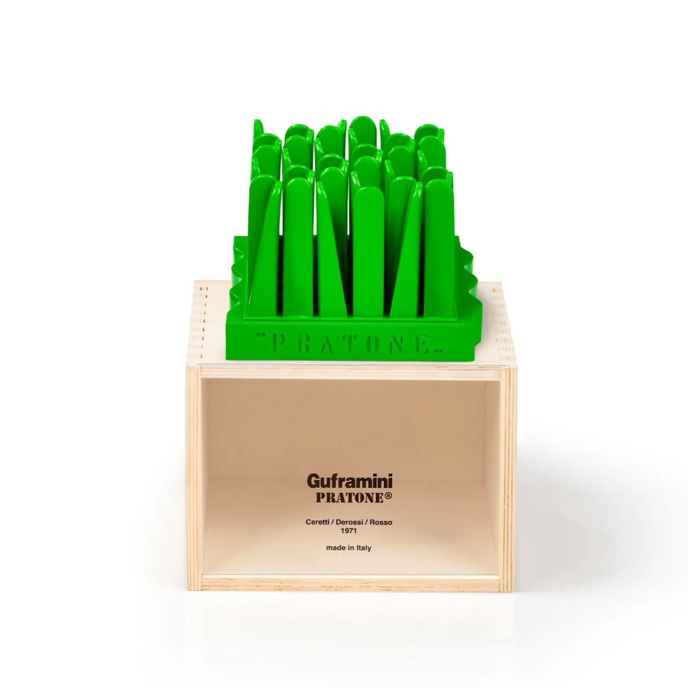 Le icone Gufram sono diventate più piccole e si sono trasformate in Guframini! Progettate in scala 1:8, le nuove miniature riproducono perfettamente le famose sculture originali. Ogni “mini” creazione è realizzata in poliuretano espanso che viene iniettato nello stampo precedentemente dipinto in modo da ottenere, attraverso un metodo all’avanguardia, un pezzo unico identico all’originale: stessa morbidezza, stessi colori e stessi dettagli. Ogni Guframinis viene poi rifinito a mano, ogni pezzo è unico nel suo genere.