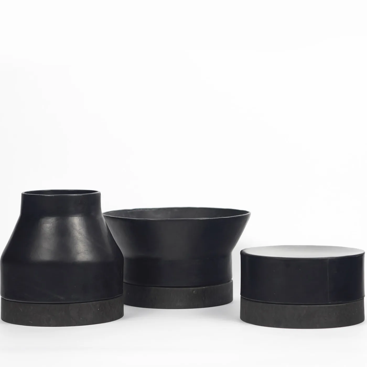 Pietra e cuoio si uniscono in un perfetto contrasto, proprio come il sole e la luna, o il caldo e il freddo. Questo elegante contenitore, unico nella sua forma geometrica, è realizzato in pietra tunisina, tornita a macchina per completare tre diverse forme in cuoio, battute su stampi di legno, attraverso un incastro che ne determinerà le varie possibilità di utilizzo.