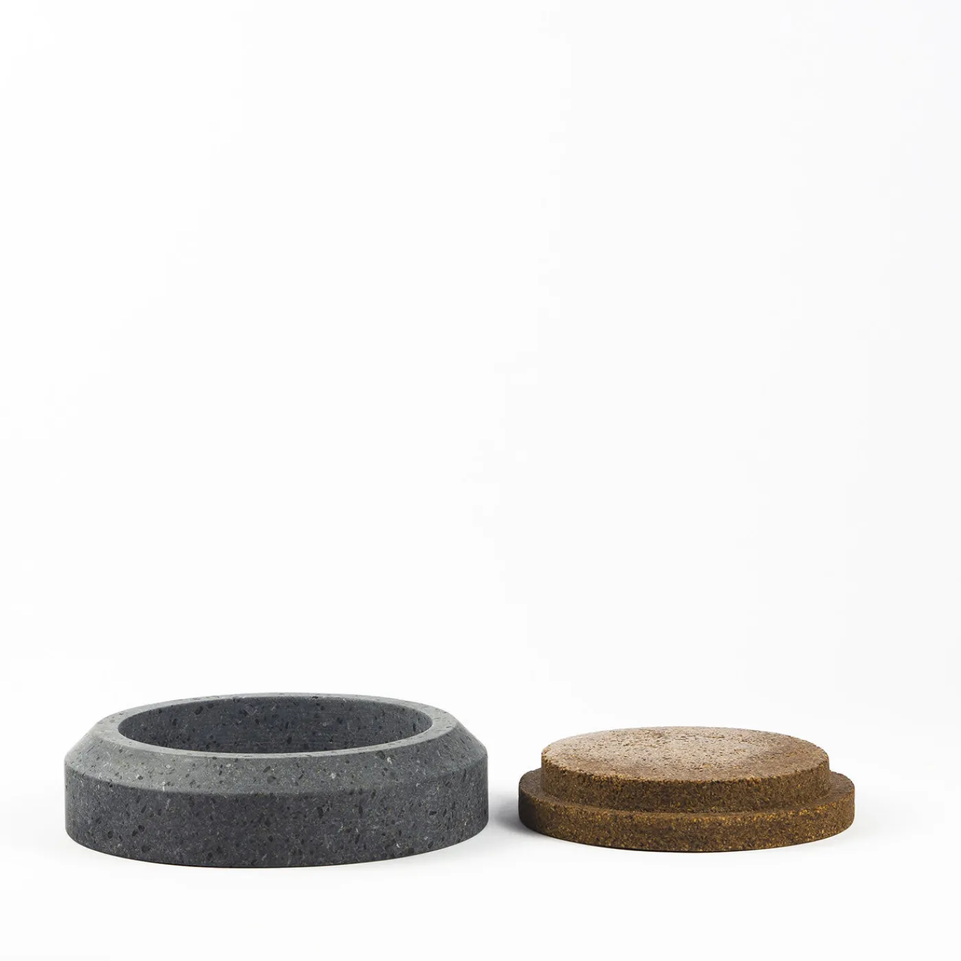 Una collezione composta da tre elementi di contenimento in Pietra di Trani, Pietra Lavica ed Emperador Light con coperchio in Keep Life; un nuovo materiale composito, ecologico e malleabile, ricavato dai gusci di nocciole, castagne, noci, mandorle, pistacchi, arachidi, ecc. Racchiuso nel tempo, il contenitore diventa pietra e il contenuto il suo sigillo.