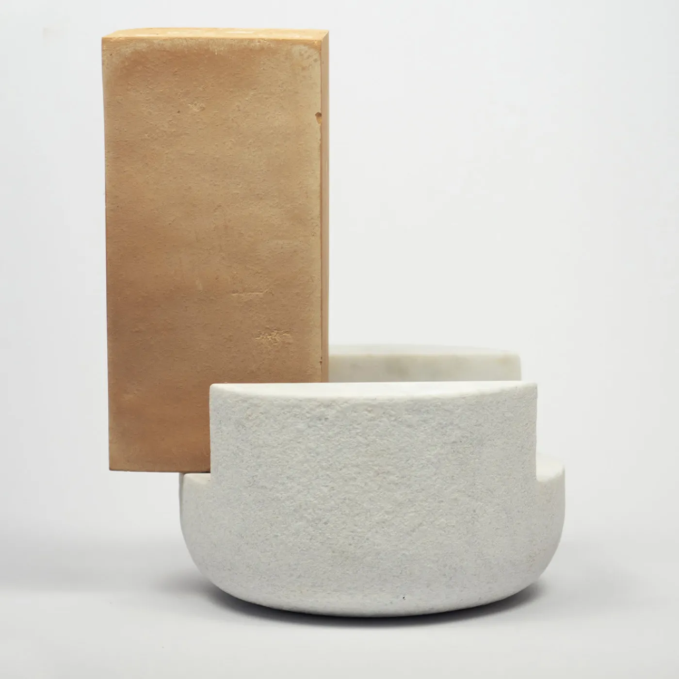 Alla ricerca di storia e territorio per individuare nuove strade per nuovi oggetti contemporanei, due aziende del napoletano si uniscono per puntare sull’eccellenza produttiva e su lavorazioni uniche e raffinate. Una collezione realizzata in marmo bianco di Carrara, martellato a mano e tornito a macchina, incontra la terracotta di stile più artigianale, utilizzando tecniche antiche.