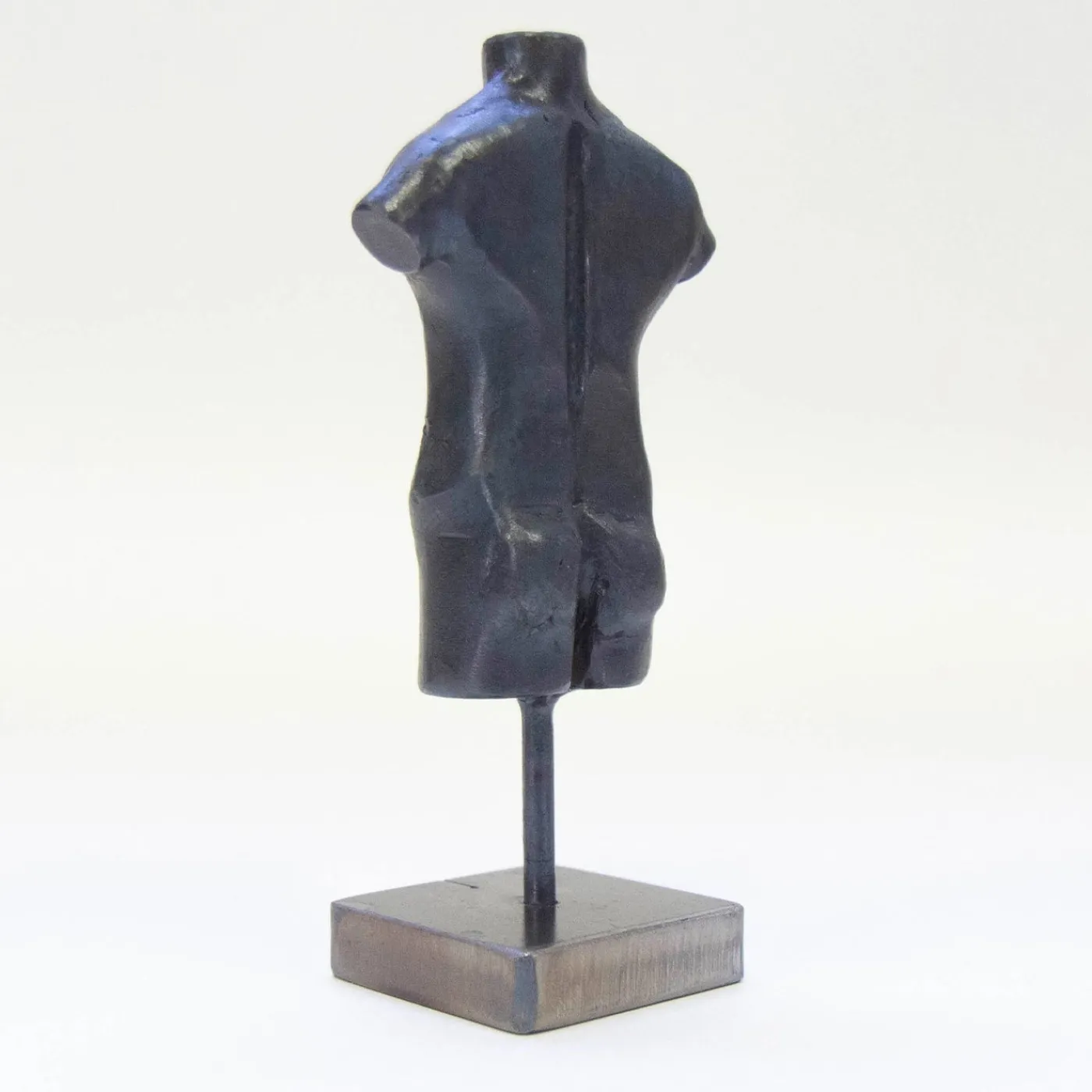 Questa singolare scultura antropomorfa è frutto di un instancabile processo di stampaggio e cesellatura da parte di Lorenzo Quadalti. Nonostante le sue dimensioni ridotte, ha richiesto uno sforzo manuale e una perizia straordinari per essere realizzata e levigata da un unico blocco di ferro, un processo di lavorazione alimentato dalla ricerca della perfezione che riecheggia l’ispirazione e l’etica greca antica della perfezione fisica e mentale.