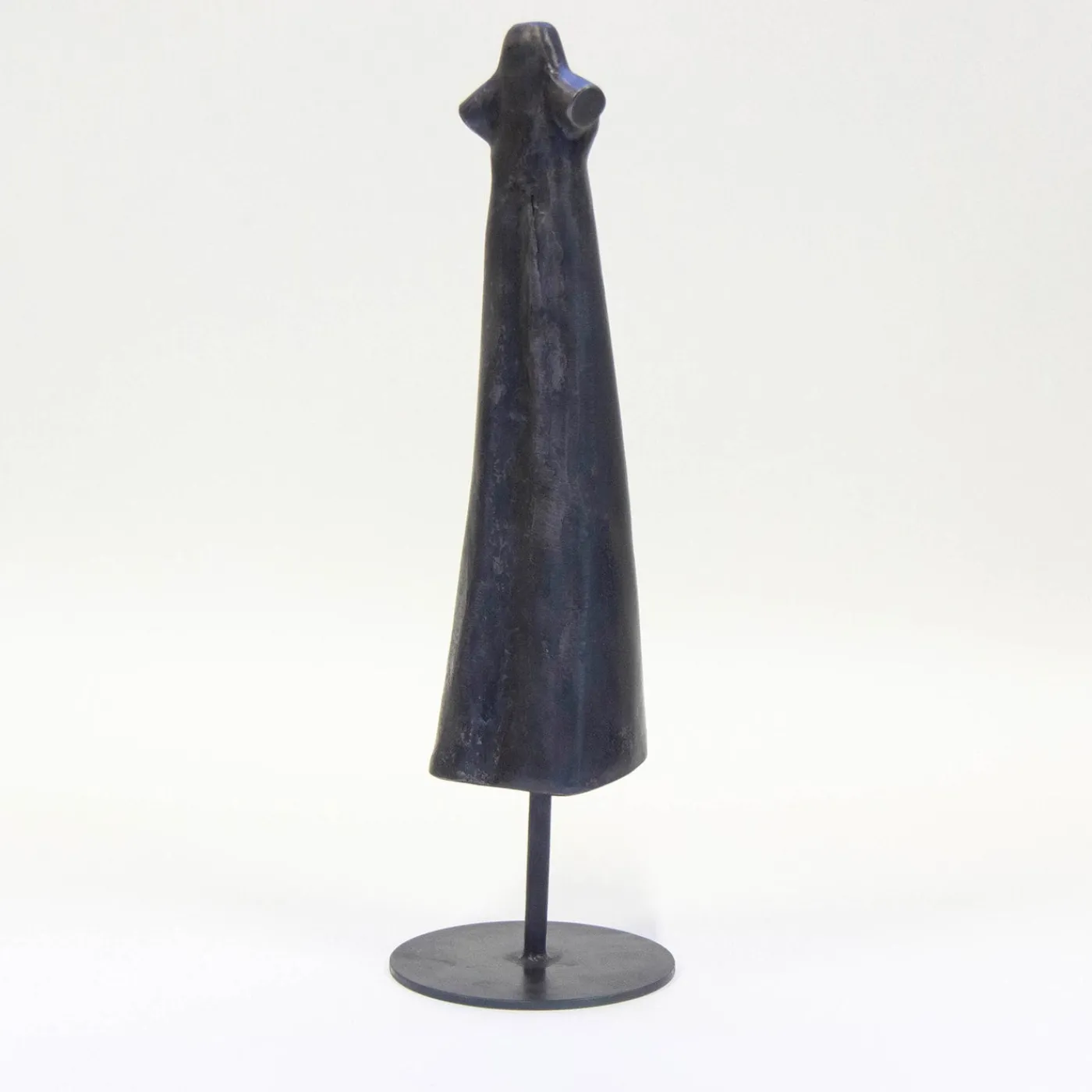 Controparte della scultura “Fat Woman N.5”, questa singolare opera esplora ulteriormente il carattere relativo della bellezza. Una tranquilla base in tondino sostiene la sua sottile e stilizzata silhouette antropomorfa, ottenuta modellando un’unica lastra di ferro direttamente sull’incudine. Con questo significativo oggetto d’arte, l’artista Lorenzo Quadalti afferma che la bellezza non sta nelle icone da imitare, ma nella ricerca di dettagli unici.