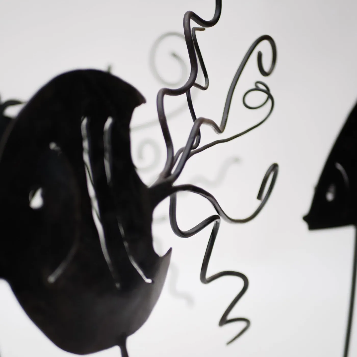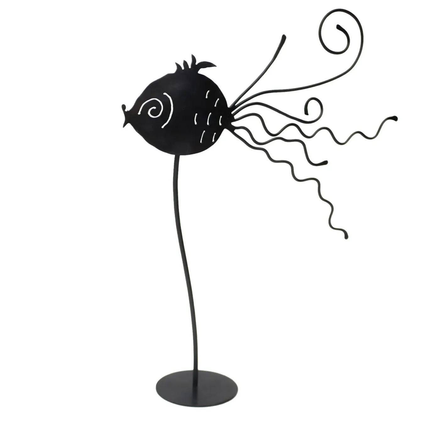 Questa superba scultura in ferro con un’intensa finitura brunita sarà un’aggiunta azzeccata a un arredamento in stile costiero, capace di accentuare qualsiasi angolo con la sua personalità stravagante. Sollevato da una base compatta, un gambo di salice guida all’elemento superiore appiattito a forma di pesce, magistralmente realizzato a mano in una versione giocosa e stilizzata con trafori decorativi che simulano le sue caratteristiche fisiche e aste metalliche arricciate per l’eccentrica coda. Il design è rifinito con uno strato protettivo di olio.