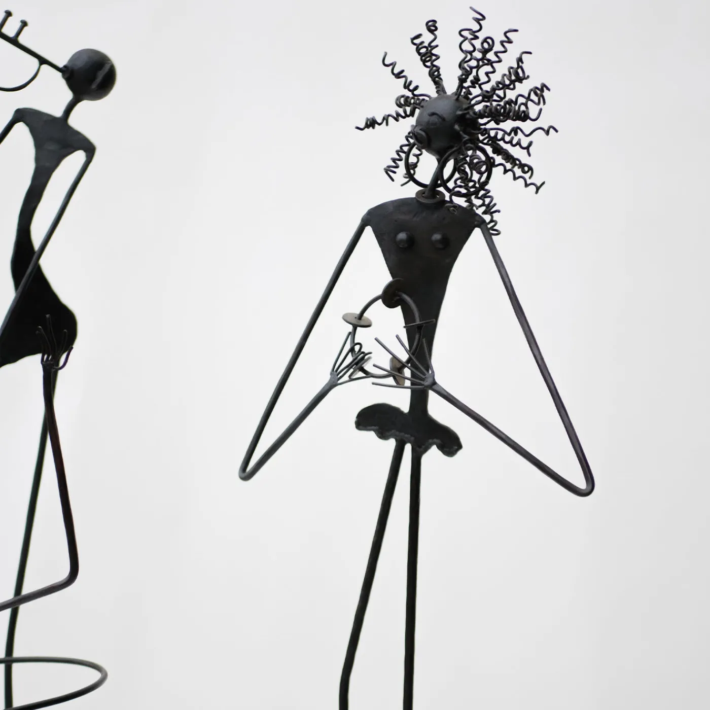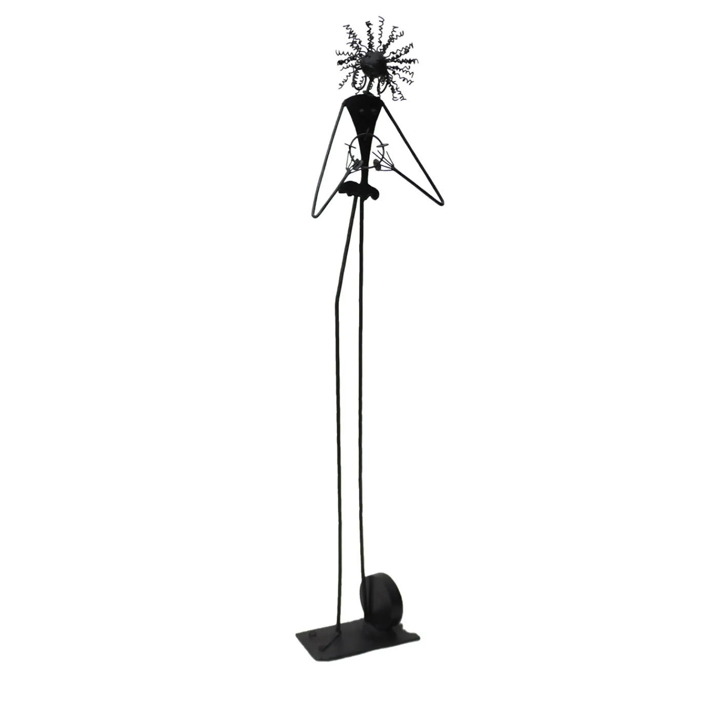 Questa preziosa scultura antropomorfa, minuziosamente realizzata a mano in ferro battuto, raffigura una cantante afroamericana stilizzata mentre esegue una delle sue canzoni aiutata da un piccolo strumento musicale con campanelli. Le componenti sproporzionate e drammatiche del suo corpo sono rappresentative del suo talento e del suo carattere allegro, suscitando un sottile divertimento nell’osservatore. La finitura brunita e l’applicazione di olio come tocco finale suggellano il disegno, regalo perfetto per gli interni in stile etnico.