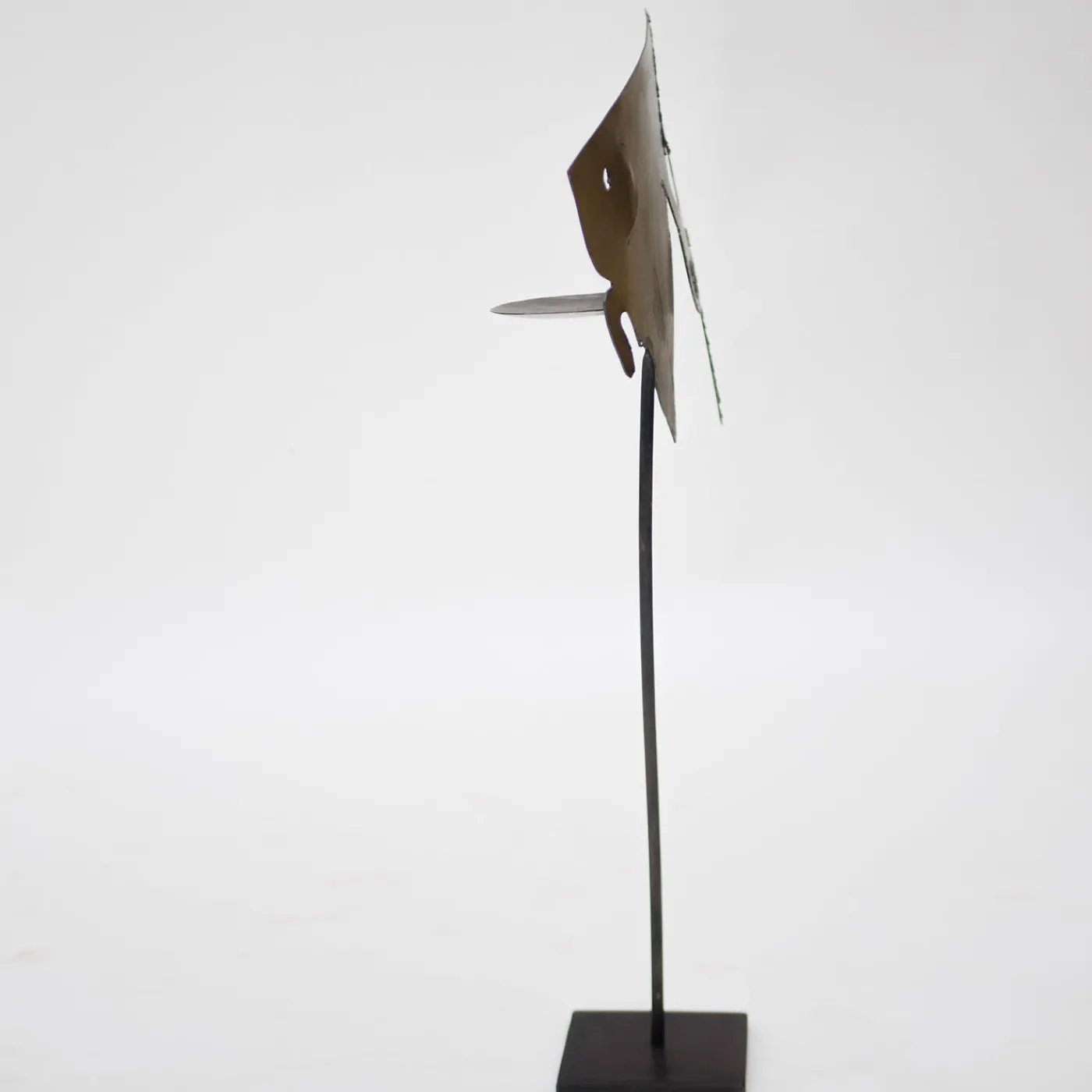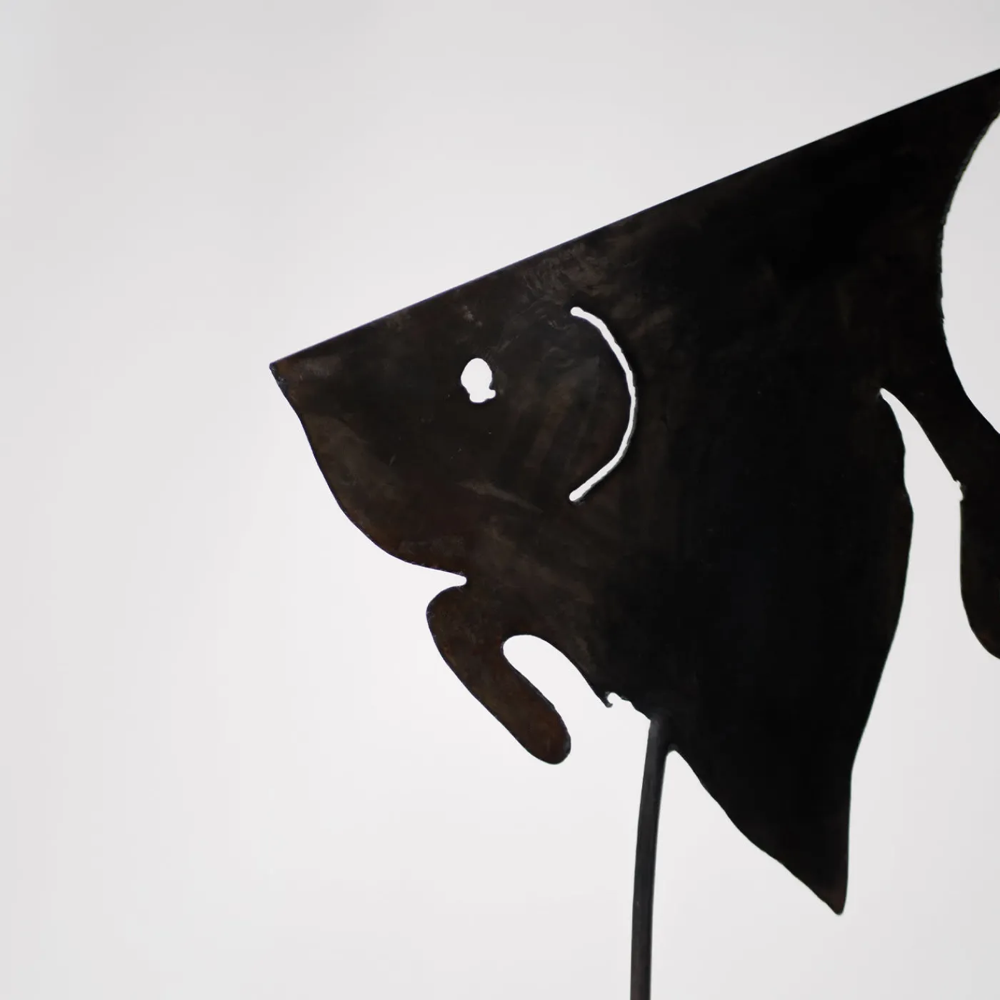 Questo design di grande effetto in ferro battuto brunito, che emana un’atmosfera contemporanea, è splendido sia come pezzo puramente decorativo che come portacandele. Il gambo allungato che si erge dalla base quadrata funge da sostegno per il pesce, il cui corpo vagamente triangolare ha ispirato il nome della scultura. I tratti fisici sono resi magistralmente dall’artista modellando abilmente il profilo e creando fori specifici per aggiungere la profondità e l’espressività necessarie al soggetto.
