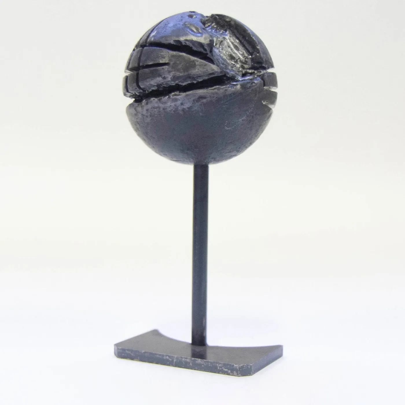 Tanto minimalista nella forma quanto ricca di significato, questa scultura in ferro unica dell’artista Lorenzo Quadalti è stata realizzata per simboleggiare la coesistenza di perfezione e imperfezione nella vita quotidiana. La sfera presenta incisioni nitide e dinamiche insieme a difetti intenzionali ottenuti con un cannello da saldatore. Sarà un’aggiunta superba alle scrivanie o alle consolle delle case contemporanee.