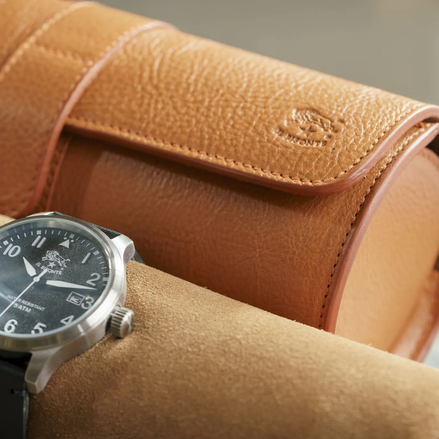 Una raffinata custodia per orologi e gioielli realizzata in pelle conciata al vegetale, con un morbido interno foderato in pelle scamosciata per proteggere oggetti delicati. Presenta una chiusura a bottone nascosta, combinando funzionalità con un design elegante. Questo pezzo è realizzato interamente a mano da abili artigiani e riflette il distintivo patrimonio artigianale della Toscana. Ideale per organizzare e proteggere accessori personali.