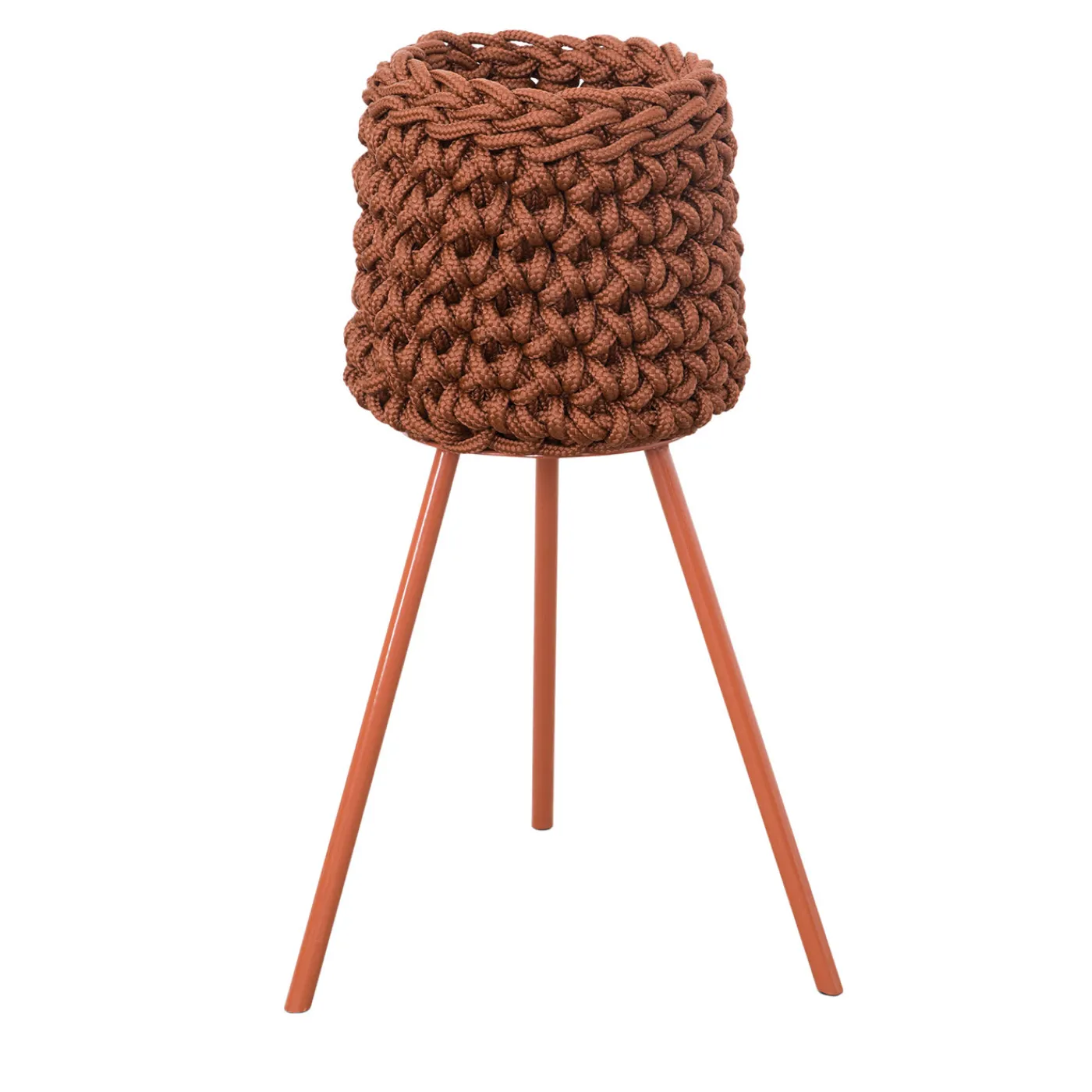 Poggiato su una base a treppiede e su una struttura in ferro verniciato a polvere color ruggine, questo portapentole è caratterizzato da un cesto intrecciato unico nel suo genere, realizzato interamente a mano con corda tecnica in polipropilene resistente all’acqua (Ø 12 mm) in tinta. Questo pezzo originale appartiene alla Collezione Le Rossette ed è disponibile in diverse misure, altezze e colori che possono essere mescolati e abbinati per creare un’elegante esposizione; per maggiori dettagli, contattare il Concierge.