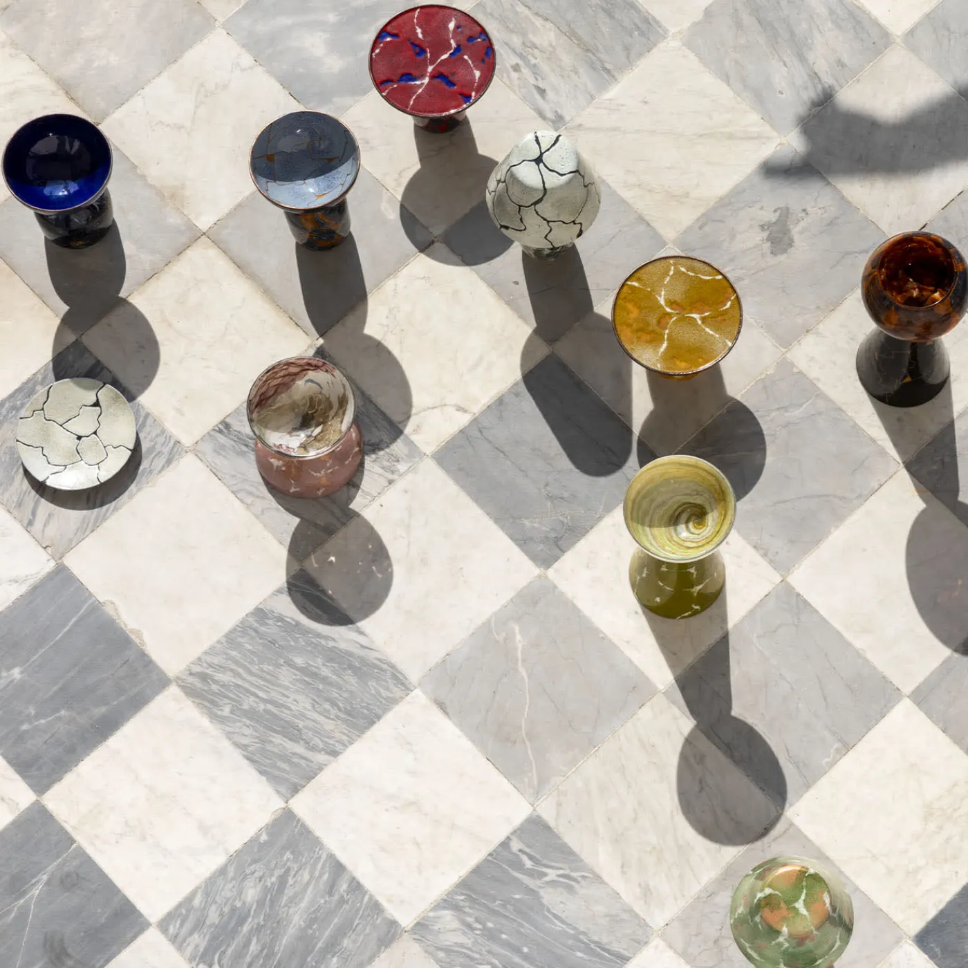 Il vaso Alchimie Murano Glass Black Emperador è un pezzo forte della collaborazione tra Incalmi e Debonademeo. Questo vaso esemplifica l’uso innovativo della polvere di vetro, trasformandola in un design sofisticato. Il gioco di sfumature nere, insieme a texture che imitano il marmo e le pietre semi-preziose, evidenzia il potenziale in evoluzione del vetro di Murano e del metallo. Questo pezzo combina l’artigianato tradizionale con un’estetica moderna.