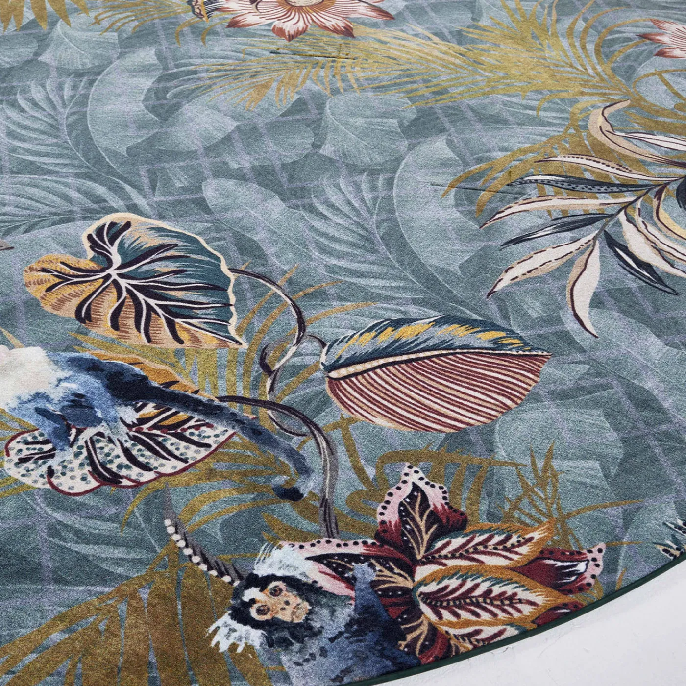 Il tappeto Lucien Jungle presenta uno sfondo geometrico dinamico, su cui si sovrappongono foglie tropicali e scimmie colorate in pose giocose. I colori vivaci e i motivi audaci donano energia e un tocco di stravaganza a qualsiasi ambiente. Questo tappeto rotondo è pensato per trasformare gli interni con un carattere distintivo, ideale per chi desidera aggiungere un tocco vivace e fantasioso al proprio arredamento.