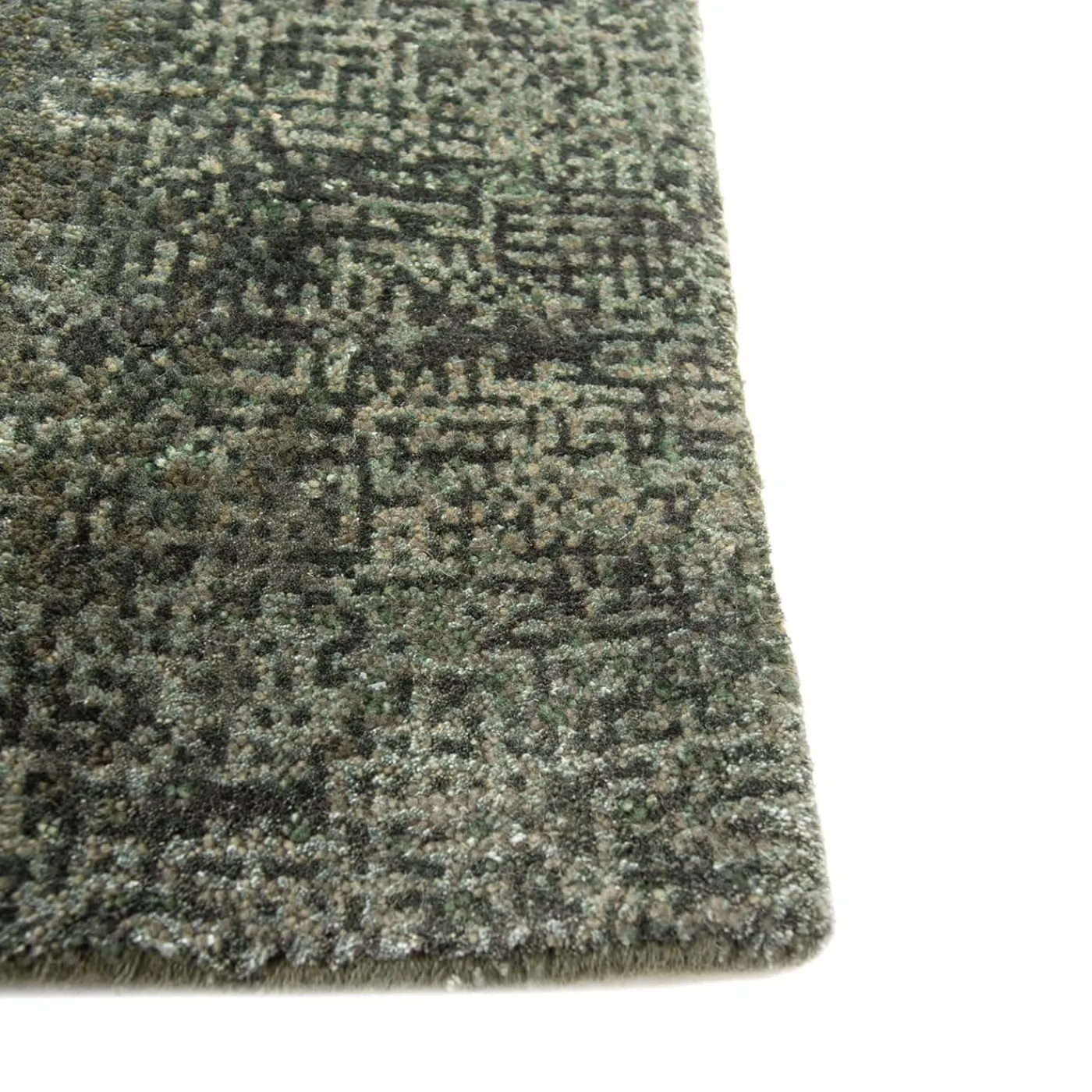 Interpretazione pittorica della bellezza della natura, questo tappeto verde foresta annodato a mano cattura il fugace gioco di luci e ombre. La miscela di lana, cotone e seta di bambù crea una profondità ipnotica che invita alla contemplazione. Una sinfonia di texture e toni, che rimane come un bagliore, un’impronta duratura di bellezza, maestria e successo in qualsiasi spazio.