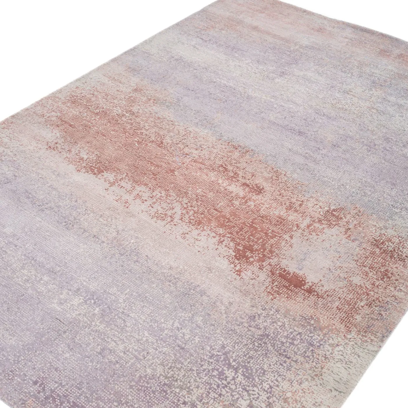 Un’ode poetica alla luce e all’ombra, questo tappeto annodato a mano nei colori Lavender Haze e Silver Pink trasforma lo spazio come la tela di un pittore. Questo tappeto è un’ode poetica alla luce e all’ombra, dove i piani spaziali si spostano come il pennello di un pittore su una tela vivente. La miscela di lana, cotone e seta di bambù crea un gioco ipnotico di profondità e movimento.