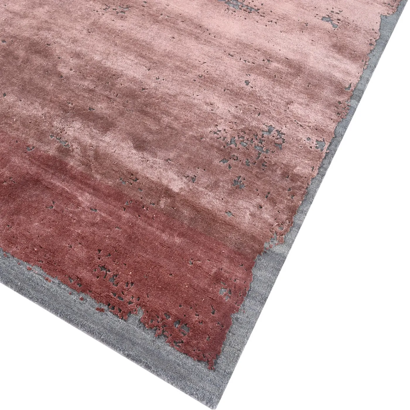 Con l’80% di seta di bambù per una lucentezza e una consistenza setosa, il 10% di lana per una maggiore durata e resilienza e il 10% di cotone per l’integrità strutturale e il comfort, offre lusso e praticità. Il motivo è elegantemente sobrio, con delicate variazioni tonali che creano un effetto organico simile a un acquerello. Le tonalità ricche e tenui del rosa scuro evocano raffinatezza e calore. È disponibile in una gamma di colori, forme e dimensioni.