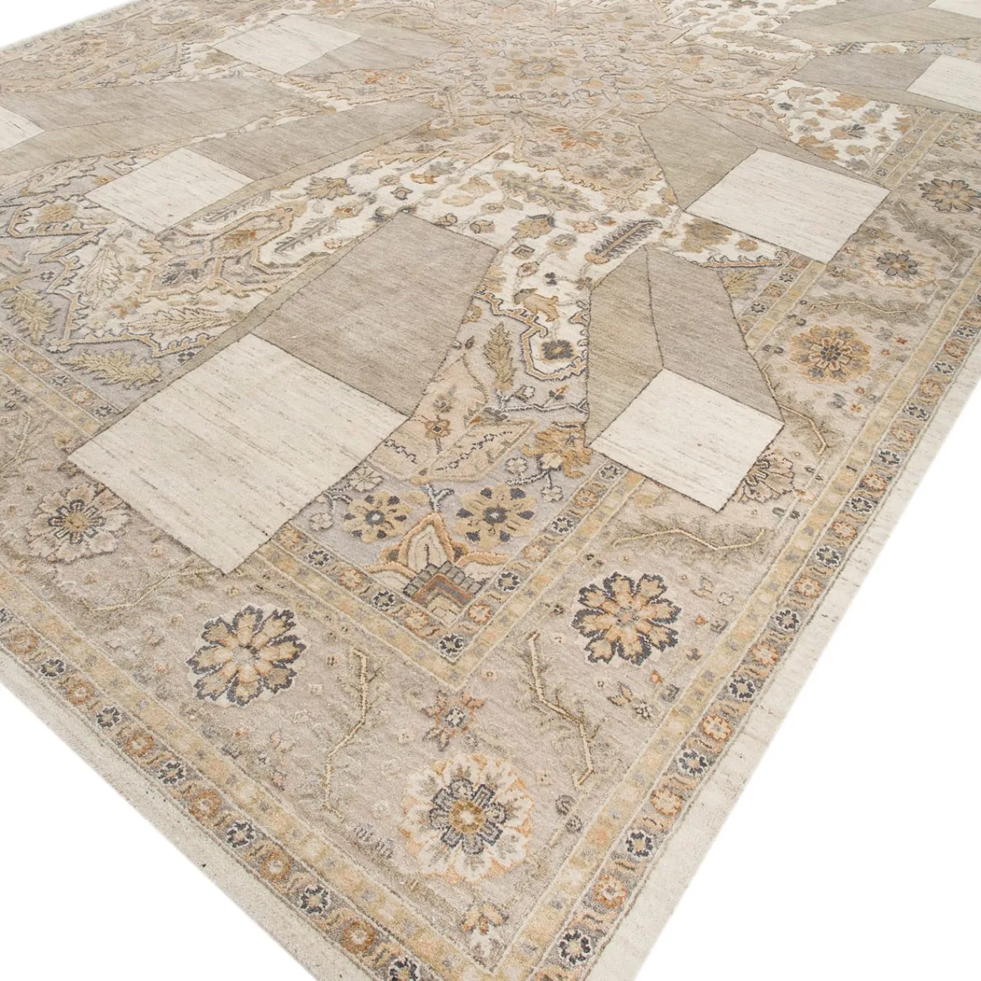 Sperimentate la fusione di eleganza tradizionale e stile contemporaneo con il tappeto Perspective annodato a mano. Questo pezzo presenta un design architettonico giocoso, con blocchi astratti che introducono un’estetica moderna su uno sfondo antico. Realizzato con una lussuosa miscela di lana e seta di prima qualità, il tappeto offre una consistenza e un comfort eccezionali sotto i piedi. L’armoniosa combinazione di oro tenue e ghiaccio vanigliato crea una palette di colori sofisticata, che lo rende un’aggiunta adattabile a vari stili di interni. Perfetto per chi desidera raccontare una storia di eleganza all’interno del proprio spazio abitativo, questo tappeto di transizione si integra perfettamente con l’arredamento classico e moderno. Meticolosamente annodato a mano nell’India rurale, incarna l’impegno per la qualità e la maestria, rendendolo un elemento centrale ideale per qualsiasi stanza.