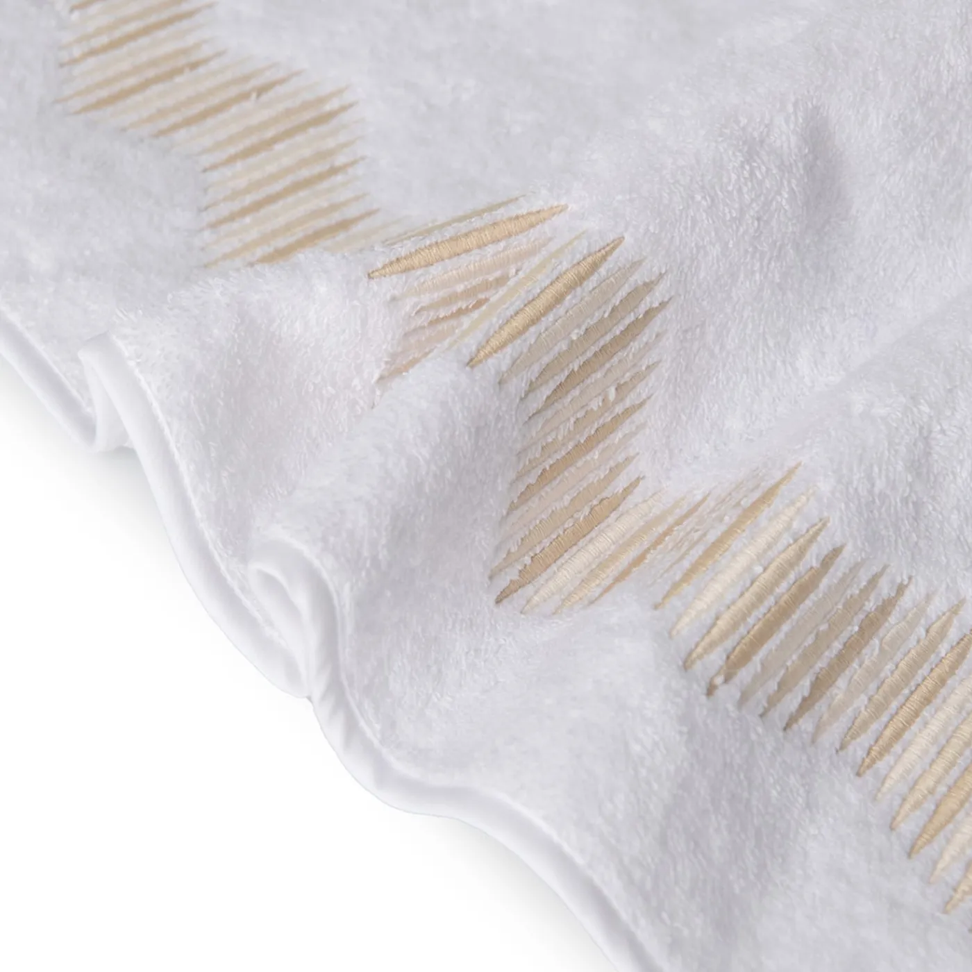 Sapientemente realizzato a mano in spugna bianca di prima qualità, impreziosito da una raffinata composizione ricamata in tre diverse tonalità di beige, questo set di asciugamano per gli ospiti (40×60 cm), asciugamano per le mani (60×100 cm) e telo da bagno (110×100 cm) sarà un accento prezioso ed elegante per ambienti classici e moderni dallo stile raffinato.